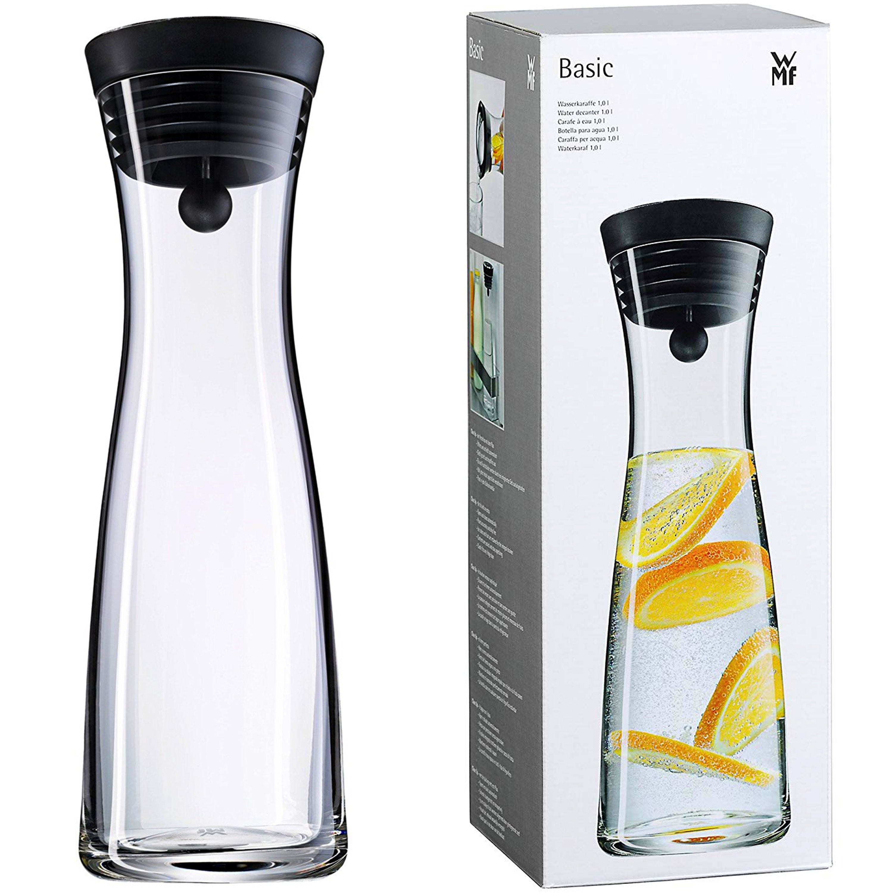 Dekanter za vodo Basic s snemljivim pokrovom. Polnjenje je enostavno zaradi velike odprtine. Poleg tega je zdaj na voljo tudi zaponka za pokrov, ki ohranja vsebino svežo in okusno. Za enostavno čiščenje so na voljo dodatni čistilni biseri.