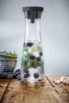The Basic water decanter with the close up lid. It is easy to fill due to the large opening. In addition, there is now also a lid clip that keeps the contents fresh and appetising. Additional cleaning pearls are available for simple cleaning.