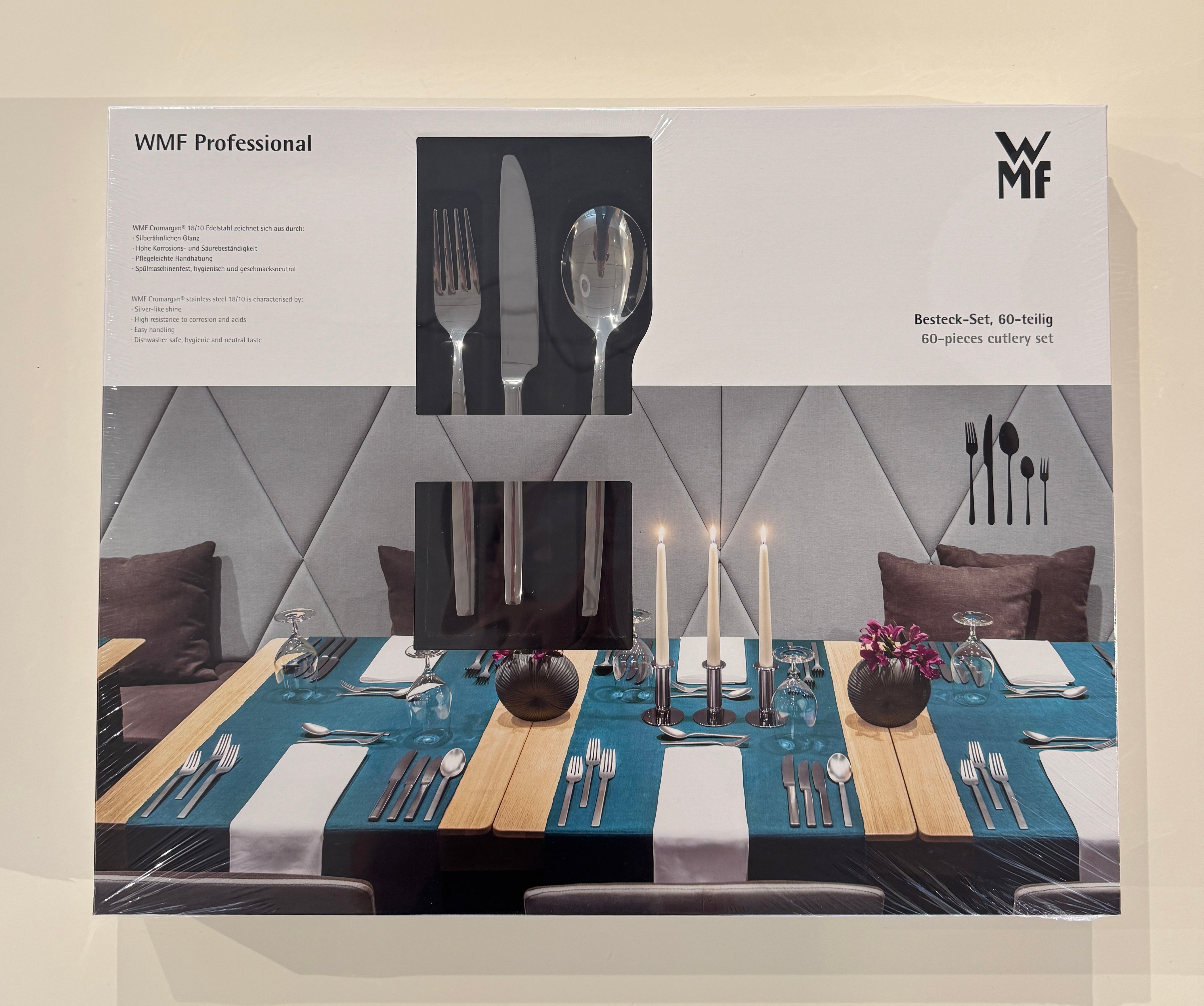 BISTRO je kolekcija jedilnega pribora WMF, ki se lepo poda k vsaki pogrnjeni mizi. Jasne, preproste linije tega kompleta so še posebej idealne za zajtrk in kosilo v sproščenem okolju. Kolekcija BISTRO se lepo ujema s preprostim porcelanom in pokriva celotno paleto kosov jedilnega pribora, zaradi česar je primerna tako za enohodne kot tudi večhodne obroke.