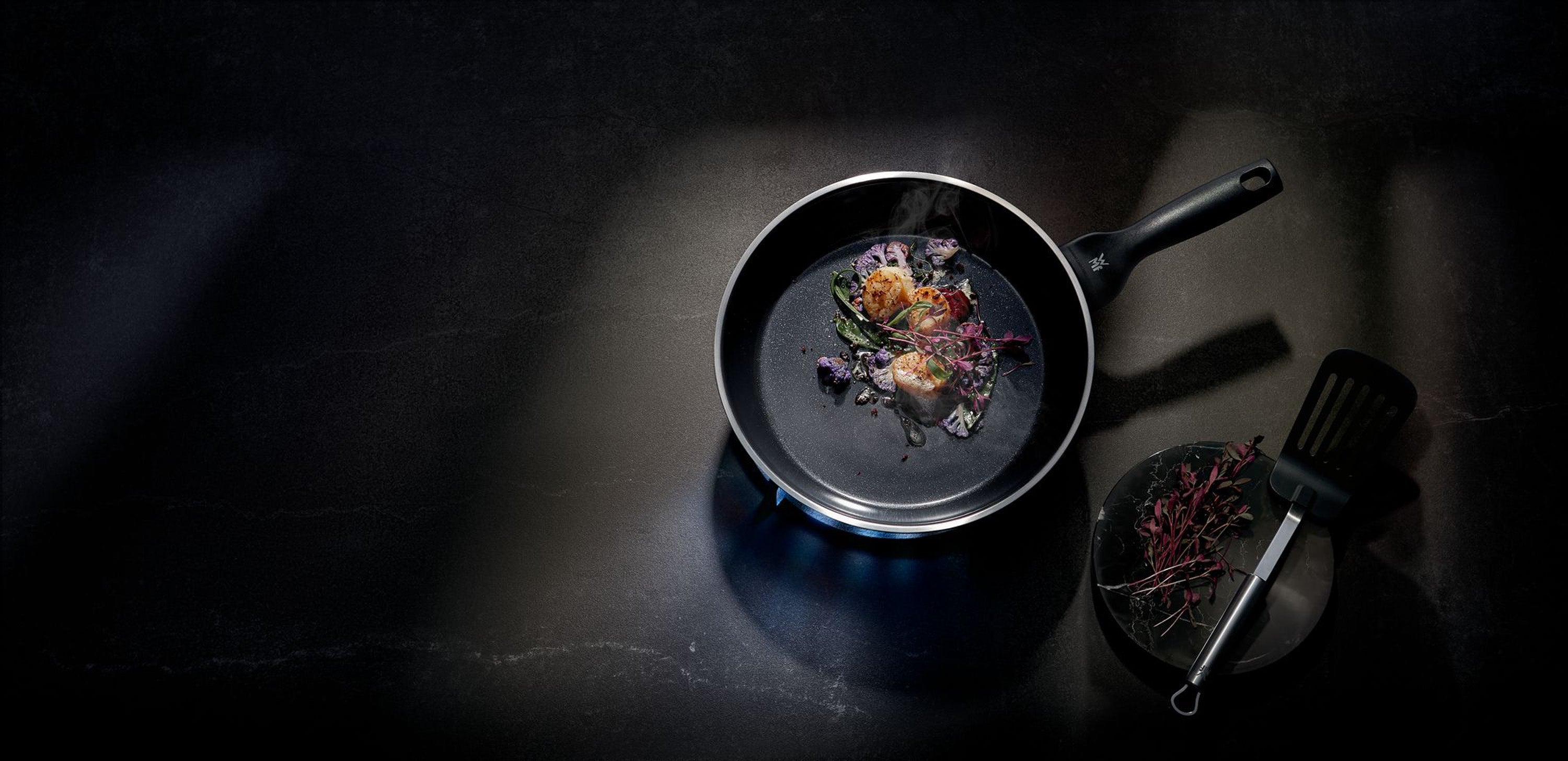 Master multifunction frying with the CeraDur Profi Frypan. Its robust CeraDur ceramic coating with its a hard mineral construction holds up to even the highest temperatures—ideal for flash frying, exceptional searing and much more. Achieve delicious results all while saving on energy, thanks to the TransTherm® universal base, which delivers optimal heat distribution and retention with every use. Crafted from sleek, durable Cromargan®: stainless steel 18/10, this kitchen pan is equipped with a heat-insulated Bakelite handle for safe handling and maximum comfort, as well as a wide pouring rim for flawless serving and pouring. It's also compatible with all stovetops, including induction, making it the perfect frying pan solution.