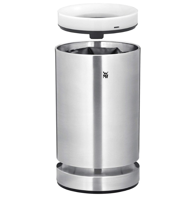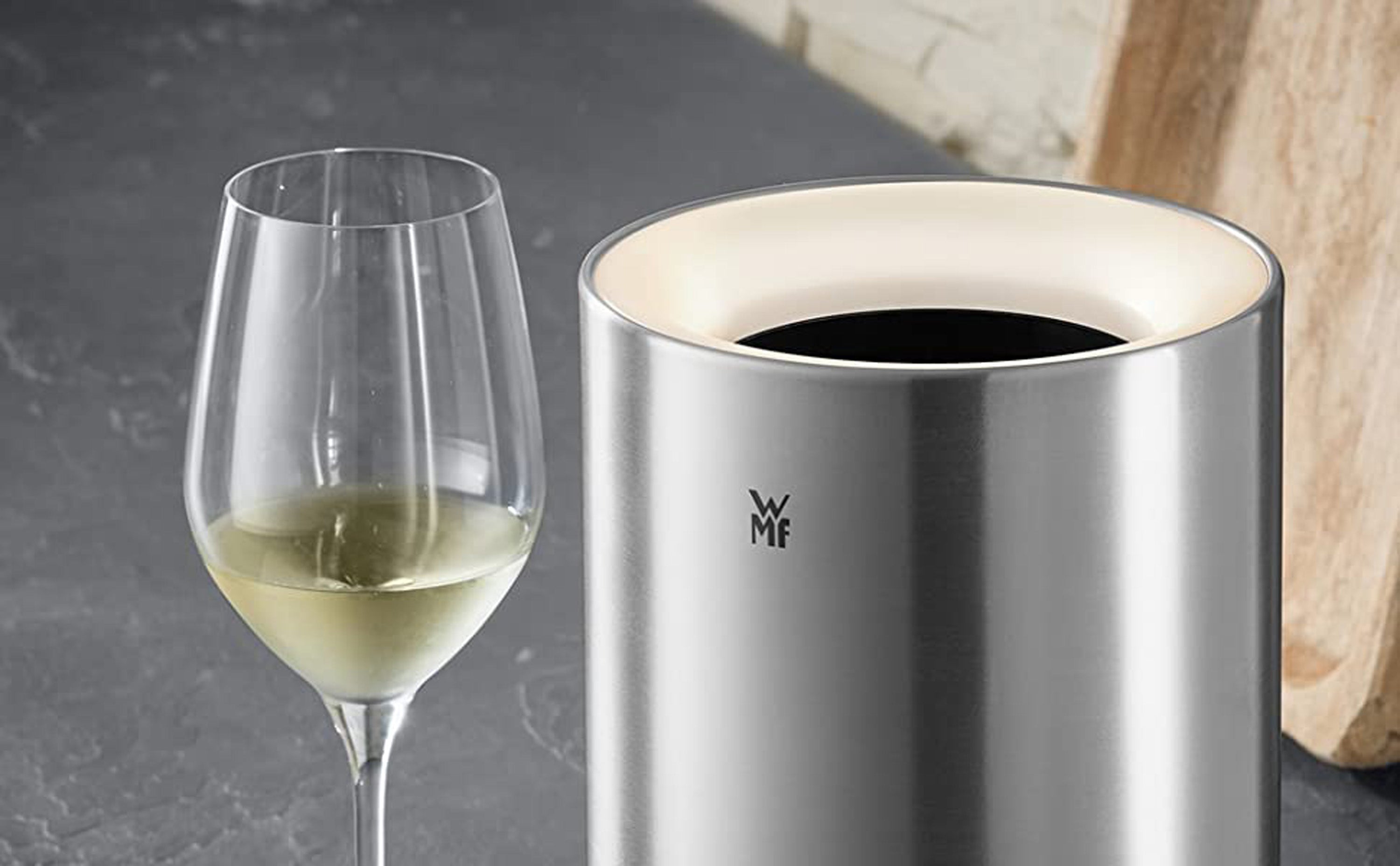 Za sijoč videz in učinkovito dekoracijo. Osvetljen hladilnik za steklenice vina in šampanjca do premera 92 mm. Dva svetlobna obroča na zgornjem in spodnjem delu hladilnika zagotavljata atmosfersko osvetlitev, ki jo upravljate s preprostim dotikom ohišja Cromargan® (tehnologija WMF Easy Touch). Nastavite lahko tri različne stopnje osvetlitve. Fleksibilen, nezlomljiv hladilnik lahko shranite v zamrzovalniku, da prihranite prostor.