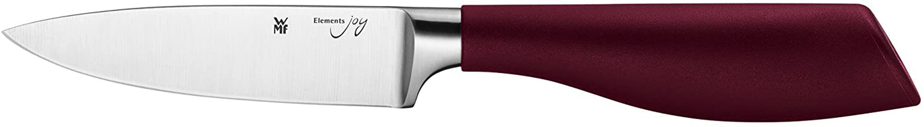 Colorful cooking and the perfect fit for small hands: The Joy Kitchen Knife Set by WMF offers perfect cutting performance designed to meet all your chopping, slicing and dicing needs—with a special ergonomic format designed to fit smaller hands. This 4-piece set includes the clever innovation of color-coded handles so you always know you're reaching for the right knife without having to pull it out of the block. The versatile all-rounder 13 cm chef knife comes with a vanilla white handle, while the 15 cm serrated utility knife is stone gray and the 9.5 cm utility knife boasts a striking shade of plum red. Smart design is matched by cooking performance. Hardened blades ensure lasting sharpness, expertly crafted from special coated blade steel that stands the test of time. This premium knife block set offers exceptional balance, comfort, durability—for uncompromising performance at WMF standards of quality.
