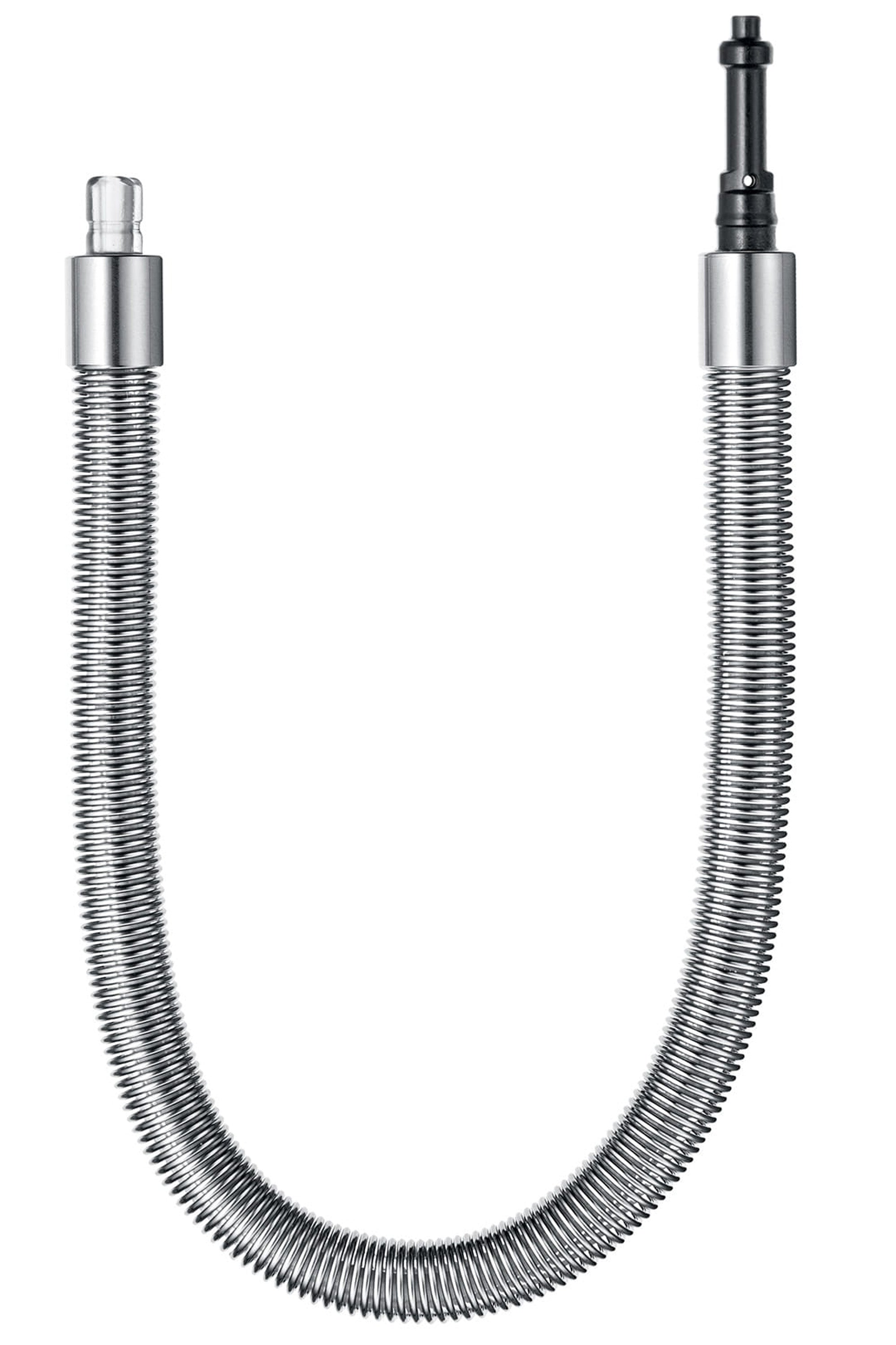 Cev za mleko, vgrajena v visokokakovostno vijačno vzmet iz nerjavečega jekla, povezuje posodo za mleko z nastavkom za mleko in je popolna pika na i elegantnemu dizajnu vašega aparata za kavo. Neprozorno ohišje iz visokokakovostnega materiala zagotavlja optimalno zaščito pred UV žarki in učinki svetlobe. Natančno nameščeni priključki zagotavljajo nepredušne povezave in zagotavlja optimalno higieno mleka.