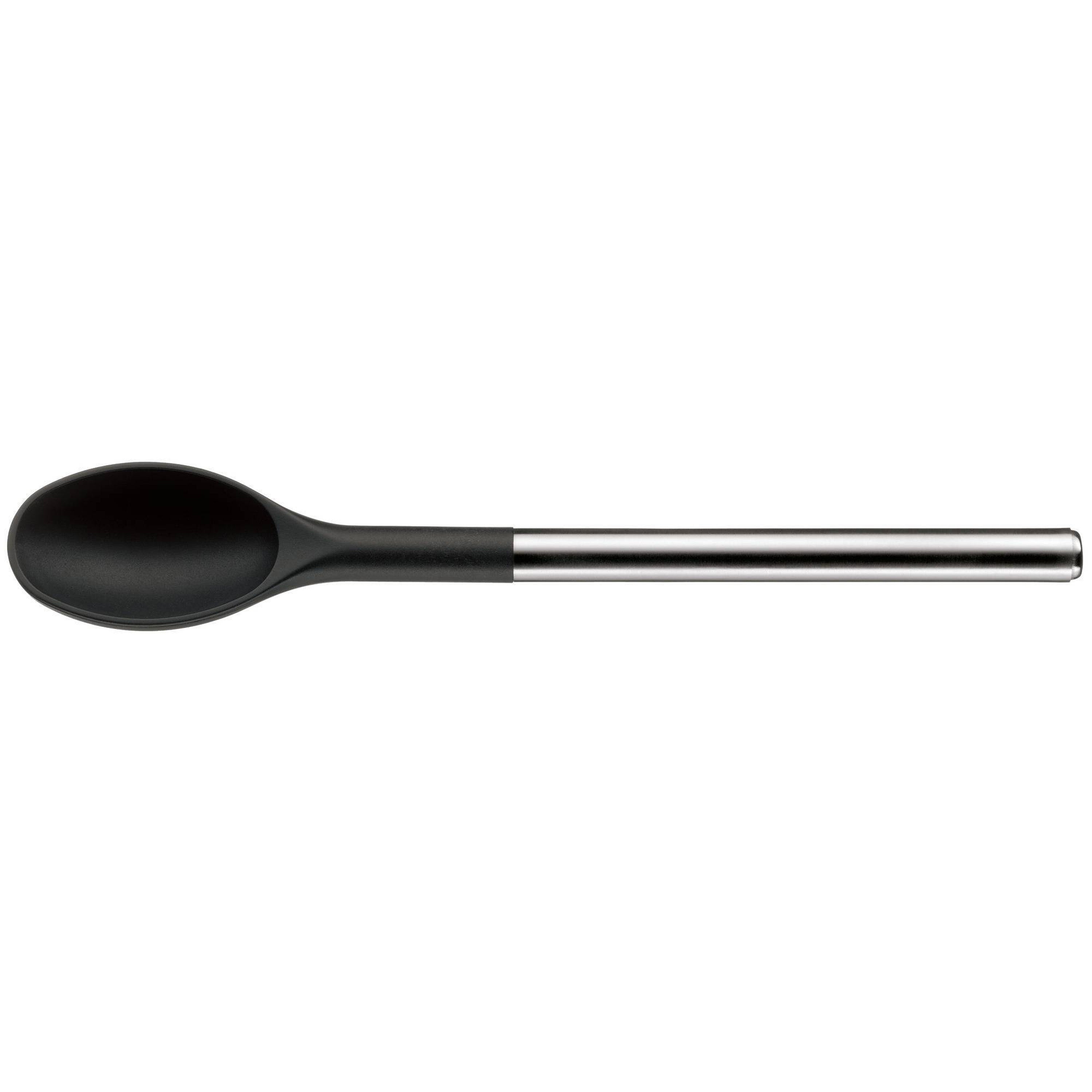 A must-have kitchen essential at WMF standards of quality: The WMF Cooking Spoon is soon to be your go-to ally for all your mixing and serving needs. This durable kitchen utensil features high-quality plastic that's completely safe and compatible with non-stick coatings, for total cooking versatility day after day. Heat-resistant up to 204°C, this cooking spoon is ideal for mixing ingredients on the stovetop or in the oven, with a comfortable grip for effortless serving right at the table. Dishwasher-safe with a handle crafted from sleek, robust Cromargan®: stainless steel 18/10—hygienic, acid-resistant and extremely hard-wearing—discover a kitchen essential promising exceptional durability and uncompromising results.