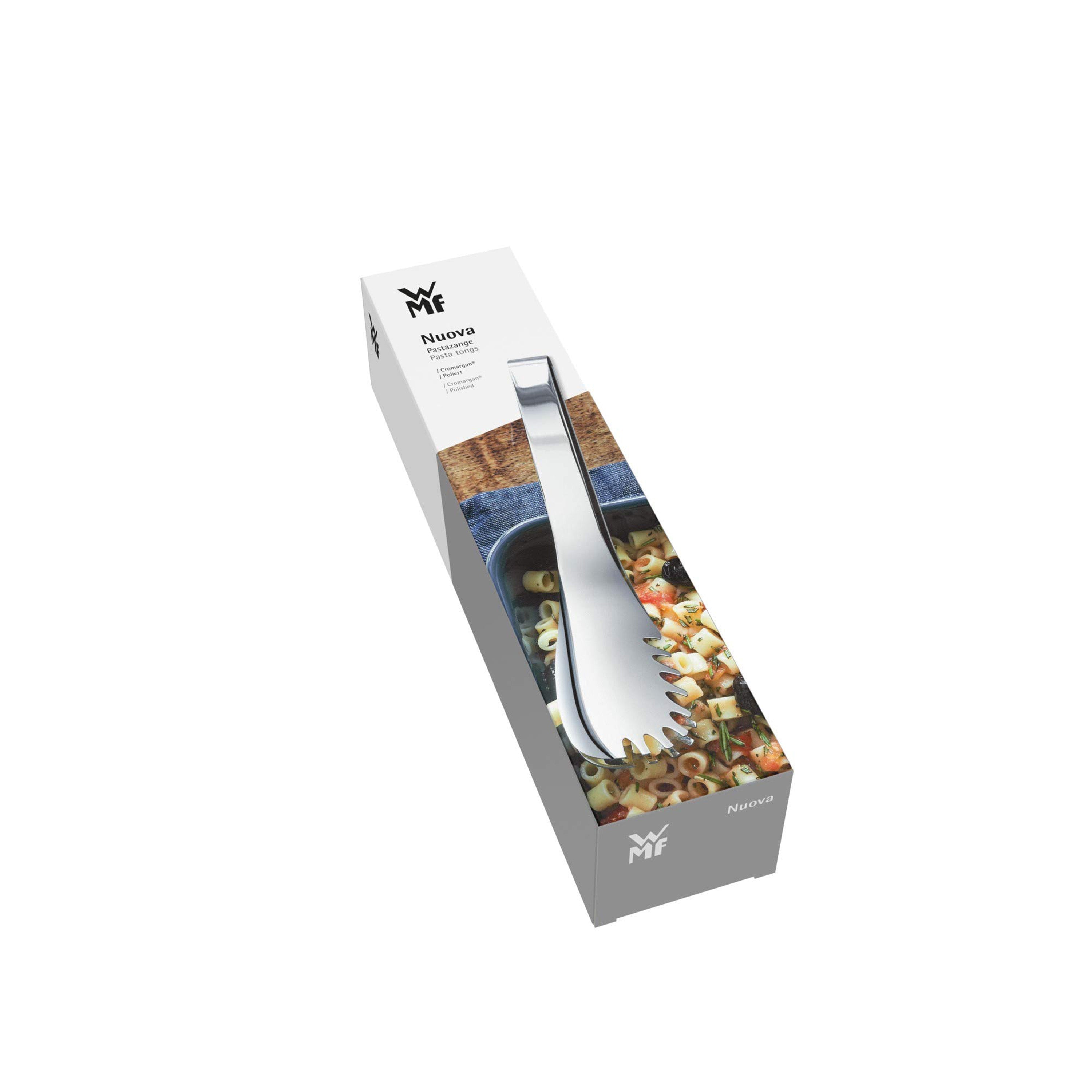 Odkrijte popolno rešitev jedilnega pribora za vsako priložnost. Serijo Nuova je brezčasna, a funkcionalna paleta raznolikega jedilnega pribora, ki obsega skoraj 50 specializiranih kosov, od namiznega pribora do servirnih pripomočkov – vsak trenutek naredi pravo doživetje obedovanja. Te osupljiva klešče za serviranje testenin je izdelana iz visokokakovostnega Cromargan®: nerjavečega jekla 18/10, za izjemno vzdržljivost z izvrstno estetiko, ki nikoli ne naredi vtisa. Ta posebni pribor, izdelan z vsemi spretnostmi in znanjem, zaradi katerih je WMF postal znan, je primeren za pomivanje v pomivalnem stroju, enostaven za nego in odporen proti kislinam v hrani. Klešče za serviranje testenin so v visokokakovostni zloženi škatli z ilustracijo, pripravljene za darilo.