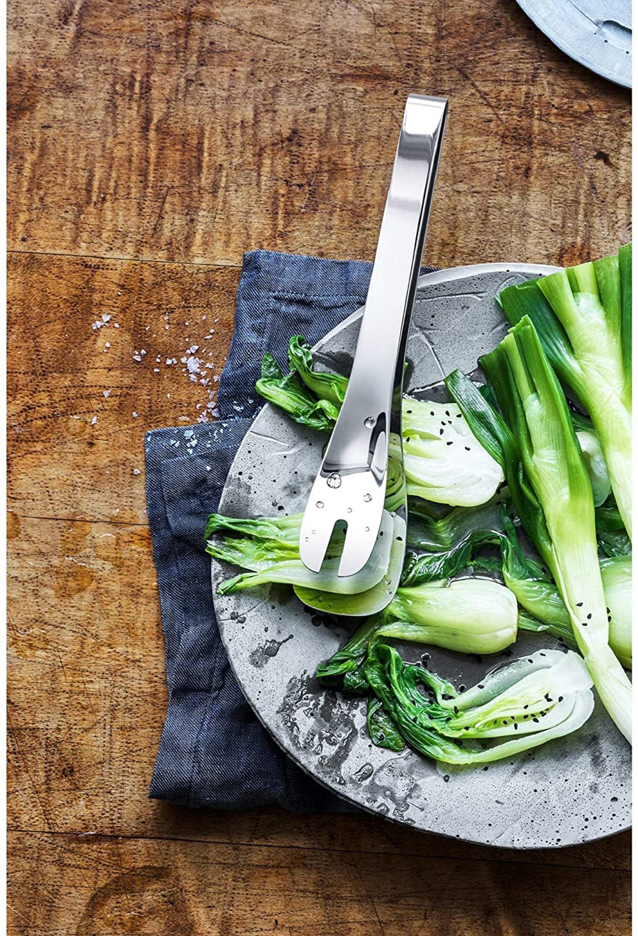 Odkrijte popolno rešitev jedilnega pribora za vsako priložnost. Serijo Nuova je brezčasna, a funkcionalna paleta raznolikega jedilnega pribora, ki obsega skoraj 50 specializiranih kosov, od namiznega pribora do servirnih pripomočkov – vsak trenutek naredi pravo doživetje obedovanja. Te osupljiva klešče za serviranje testenin je izdelana iz visokokakovostnega Cromargan®: nerjavečega jekla 18/10, za izjemno vzdržljivost z izvrstno estetiko, ki nikoli ne naredi vtisa. Ta posebni pribor, izdelan z vsemi spretnostmi in znanjem, zaradi katerih je WMF postal znan, je primeren za pomivanje v pomivalnem stroju, enostaven za nego in odporen proti kislinam v hrani. Klešče za serviranje testenin so v visokokakovostni zloženi škatli z ilustracijo, pripravljene za darilo.