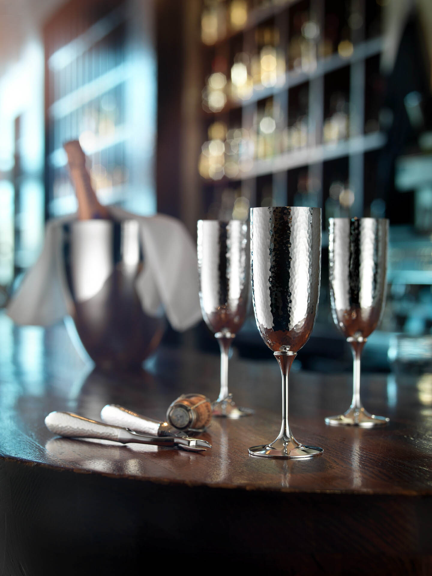 The Martelé champagne tongs by Robbe & Berking are the ideal accessory for celebrating special moments and enjoying delicious champagne. Use the cutters to quickly remove the muselet from the bottle and then use the gripper to gently and cleanly remove the cork. Serve champagne in Robbe & Berking unique silver flutes for the ultimate in indulgence.