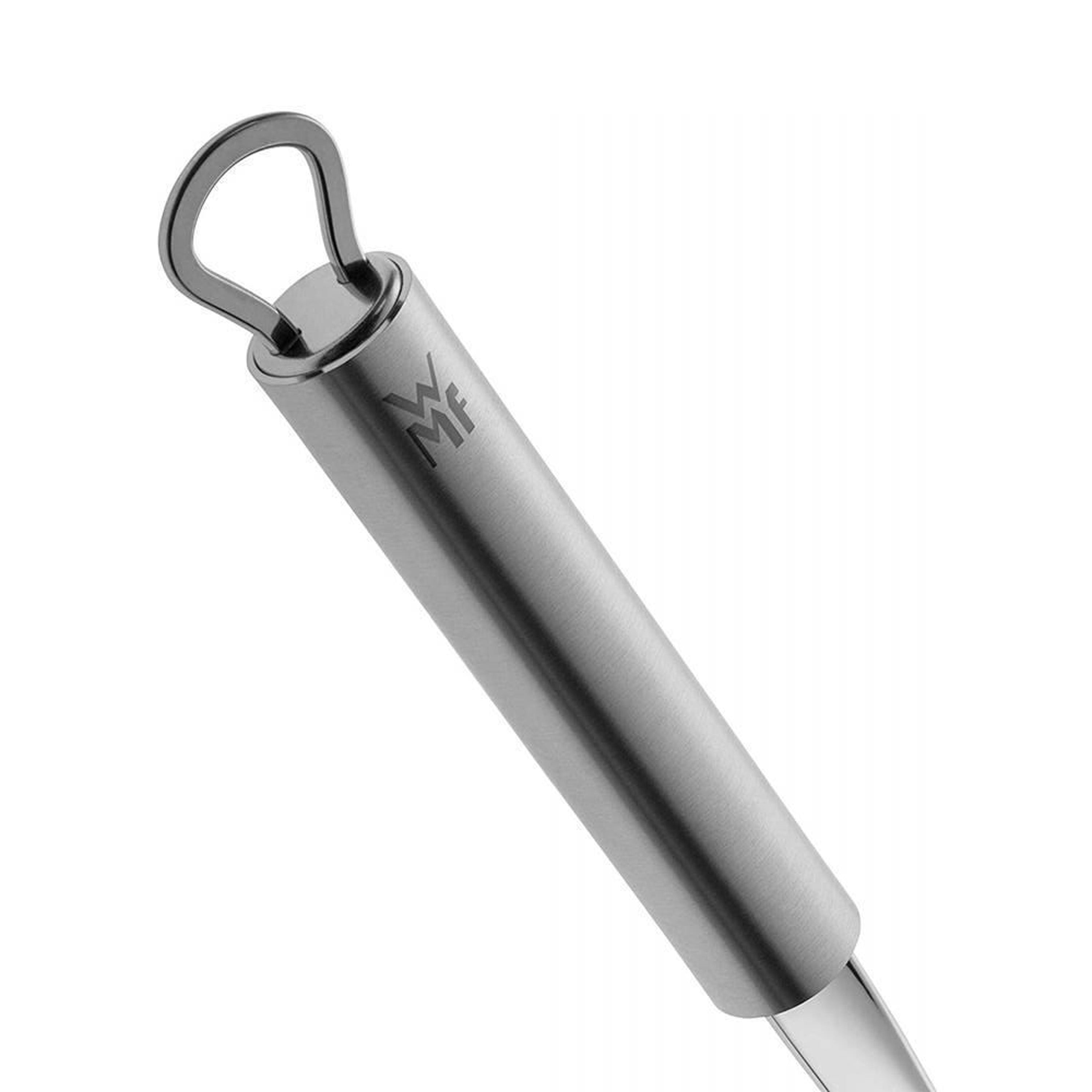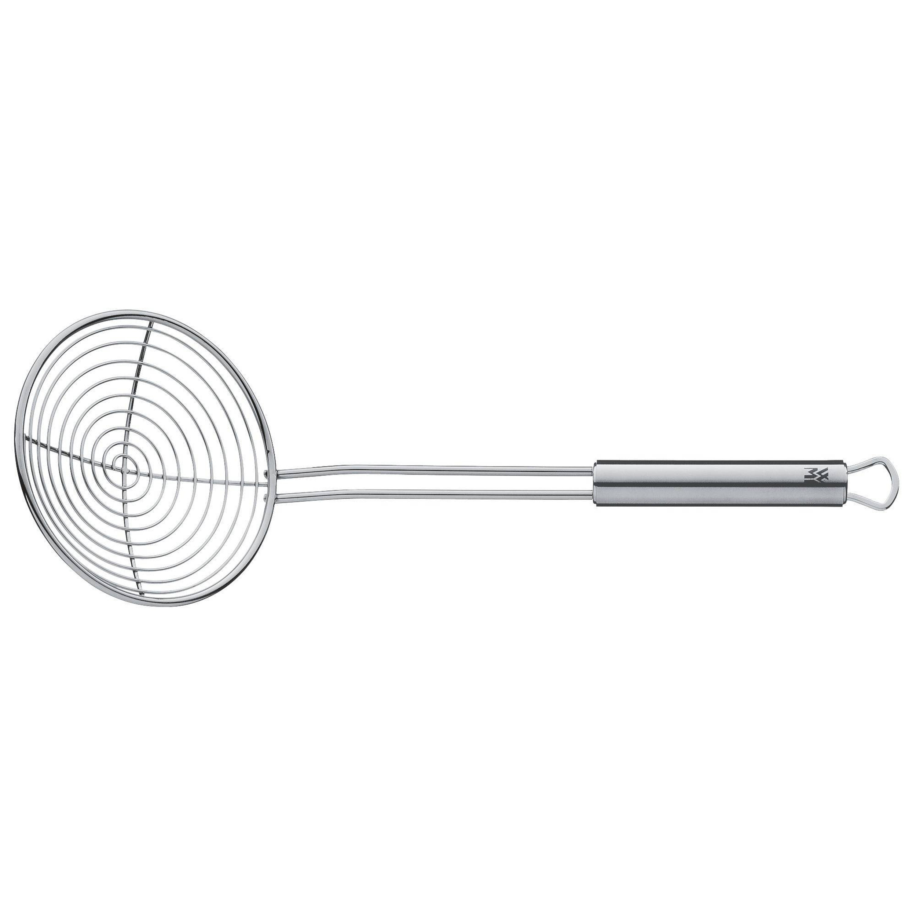 Perfect for lifting out a wide range food, the WMF Profi Plus Skimming Ladle simplifies kitchen time. Whether scooping out vegetables and dumplings or skimming off fat, its flat curvature and long handle make it easy to reach even the bottom of the pot. Crafted from stunning Cromargan®, this exceptionally durable skimmer features a practical eyelet for hanging, as well as a dishwasher-safe design for easy cleaning and perfect hygiene. The stunning yet practical Profi Plus series of kitchen tools does it all. From stylish service utensils to handy preparation tools, even the trickiest tasks become effortless. Blending premium-quality, watertight materials with a timeless aesthetic and long-lasting construction, Profi Plus is the perfect culinary range. Lenght (cm): 36,5