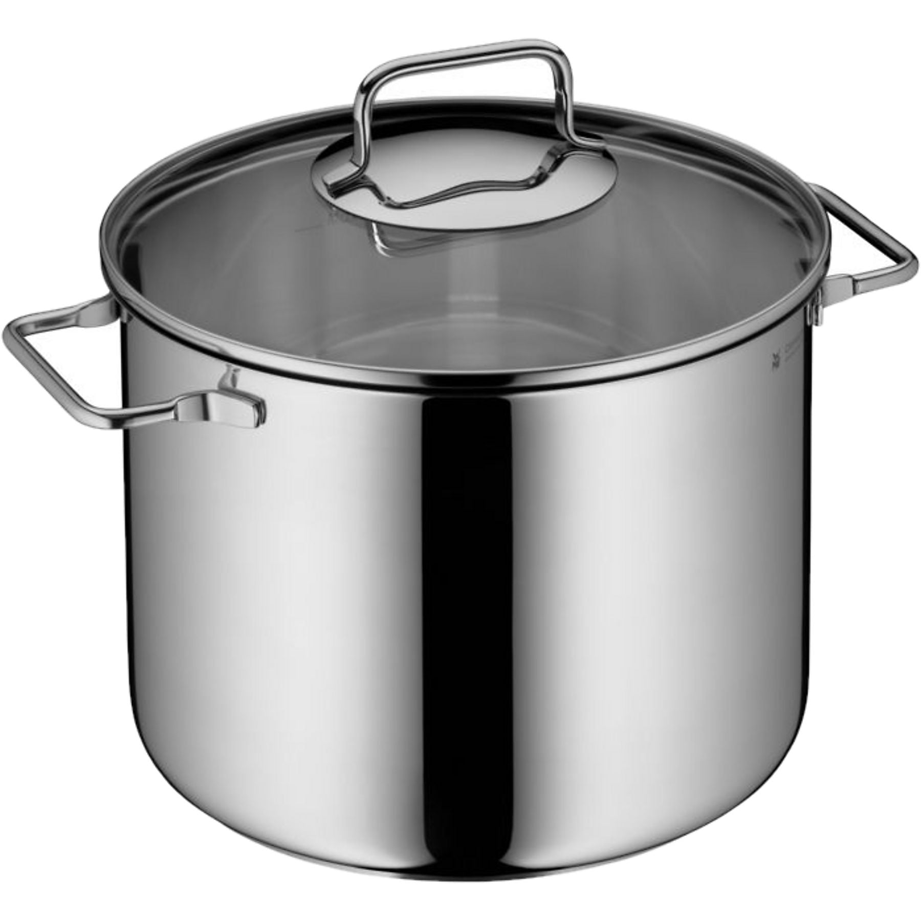 The WMF Pasta Cooker is perfect for cooking all kinds of macaroni and pasta—particularly long varieties such as spaghetti and linguine—without breaking it. Removing pasta is effortless, as well, thanks to an integrated strainer that doubles as a convenient storage option to keep pasta warm before serving. Crafted from sleek Cromargan®: stainless steel 18/10, the pot features reduced heat handles, an elegant glass lid for easy monitoring while cooking, and a wide rim for drip-free pouring and a spotless kitchen. Equipped with a TransTherm® universal base for optimal cooking results, the pasta cooker is compatible with all stovetops, including induction.