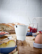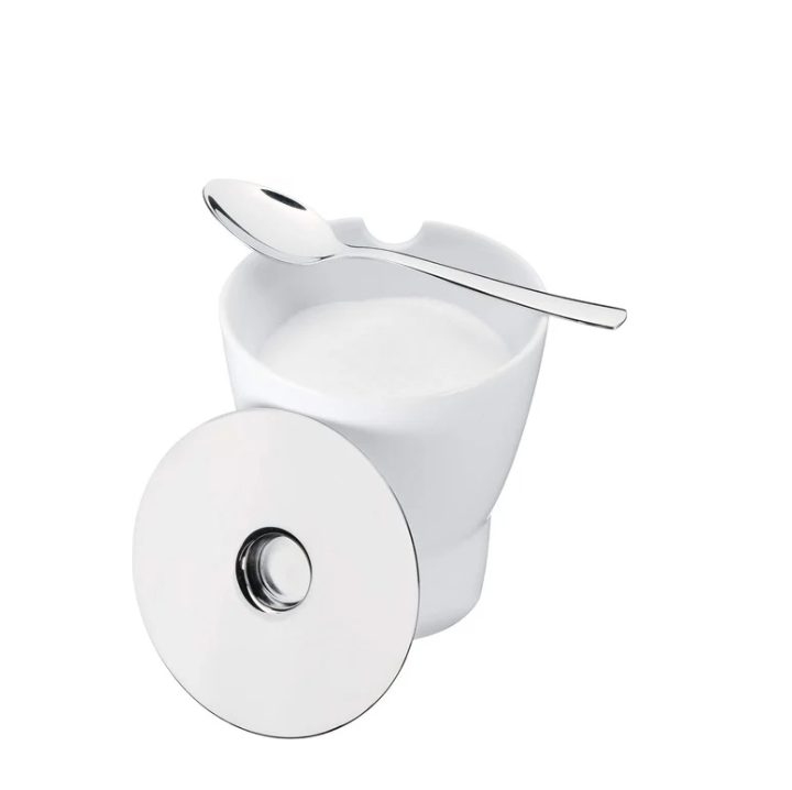 Izdelan iz visokokakovostnega belega porcelana in nerjavečega jekla Cromargan 18/10