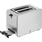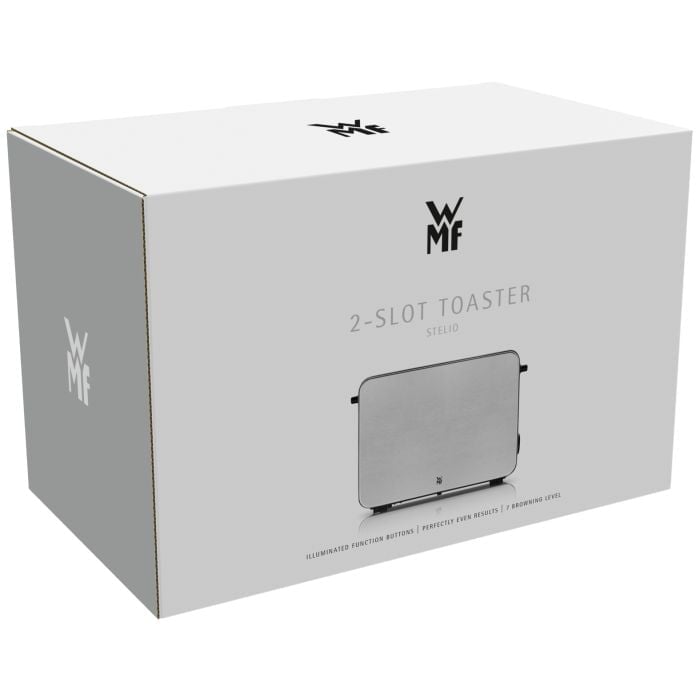 The Stelio Toaster Edition from WMF ensures toasting enjoyment at its best. Seven browning levels, a stainless steel shelf for warming up oversized treats such as rolls and croissants, and a bread centering system that places the slices exactly in the middle for even browning leave nothing to be desired. In addition, a stop function, a warm-up function and a defrost function can be easily set using the illuminated buttons. The silky matt housing made of premium Cromargan® of the elegant, GS-certified 2-slot toaster looks great in any kitchen ambience, while the removable crumb tray enables quick and effortless cleaning and the integrated cable winder also allows space-saving storage in the kitchen cupboard if required.