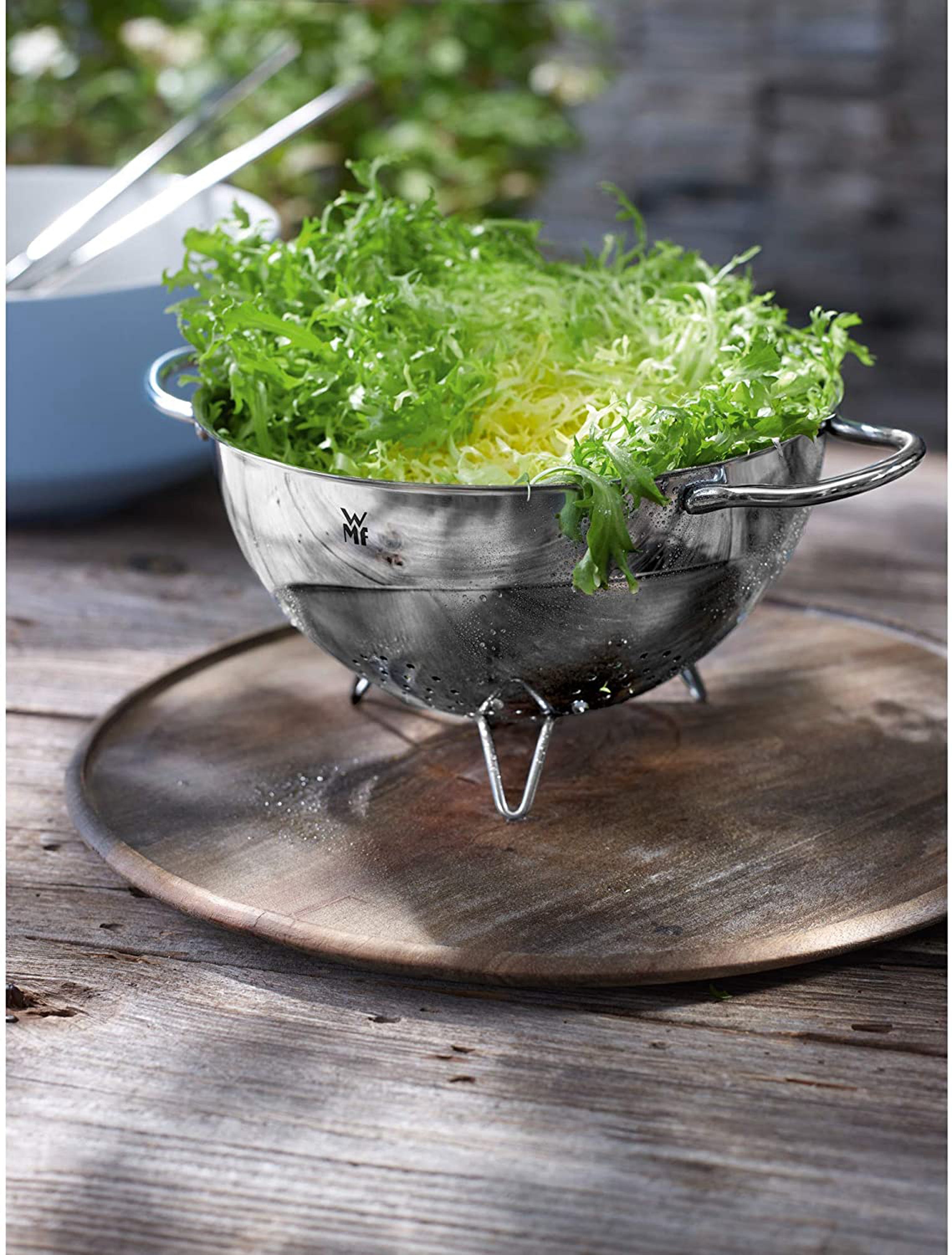The WMF Gourmet Strainer is an essential kitchen companion. Whether rinsing fruits and veggies or straining pasta, its large perforation structure promises safe, fast drainage. Well-designed from top to bottom, this stainless steel colander features a stable elevated base and ergonomic side handles, for safe and easy handling. Crafted from high-quality Cromargan®, this strainer features a stunning polished finish and is dishwasher-safe for effortless clean-up.