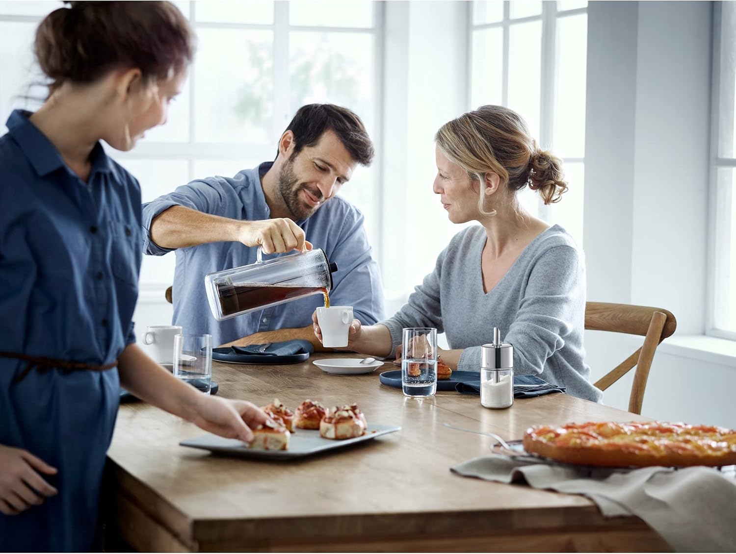Čist dizajn se dobro ujema s funkcionalnostjo. Coffee time se predstavlja s svojim brezčasnim slogom v kozarcih in skodelicah za kavo ter drugih izdelkov za pripravo kave. Vrč z dvojno steno ohranja vašo kavo toplo dolgo časa in je primeren za hitro pripravo toplega napitka, french press za kavo ali čaj.
