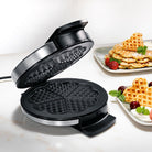 Perfect waffles, crispy on the outside and fluffy on the inside: The WMF LONO Waffle Maker puts irresistible homemade waffles within reach, with an extra-durable non-stick coating for delicious and healthy results with minimum added oil. This high-performance waffle iron comes fully equipped: easy-cleaning, scratchproof non-stick aluminum plates, a simple dial control for custom control of browning levels, a heat-insulated housing with integrated fan for peace of mind, and more. Crispy, mouth-watering waffles are crisped to golden-brown perfection in no time, with 900W of power and Cromargan®: stainless steel 18/10 for a long-lasting product with an elegant matte finish. Unlock your full creativity, whether traditional Belgian waffles with powdered sugar, American brunch classics with maple syrup, or top your waffle with fresh fruit for a healthy treat bursting with flavor. Discover the full LONO collection, for performance and durability as only WMF kitchen professionals can deliver.