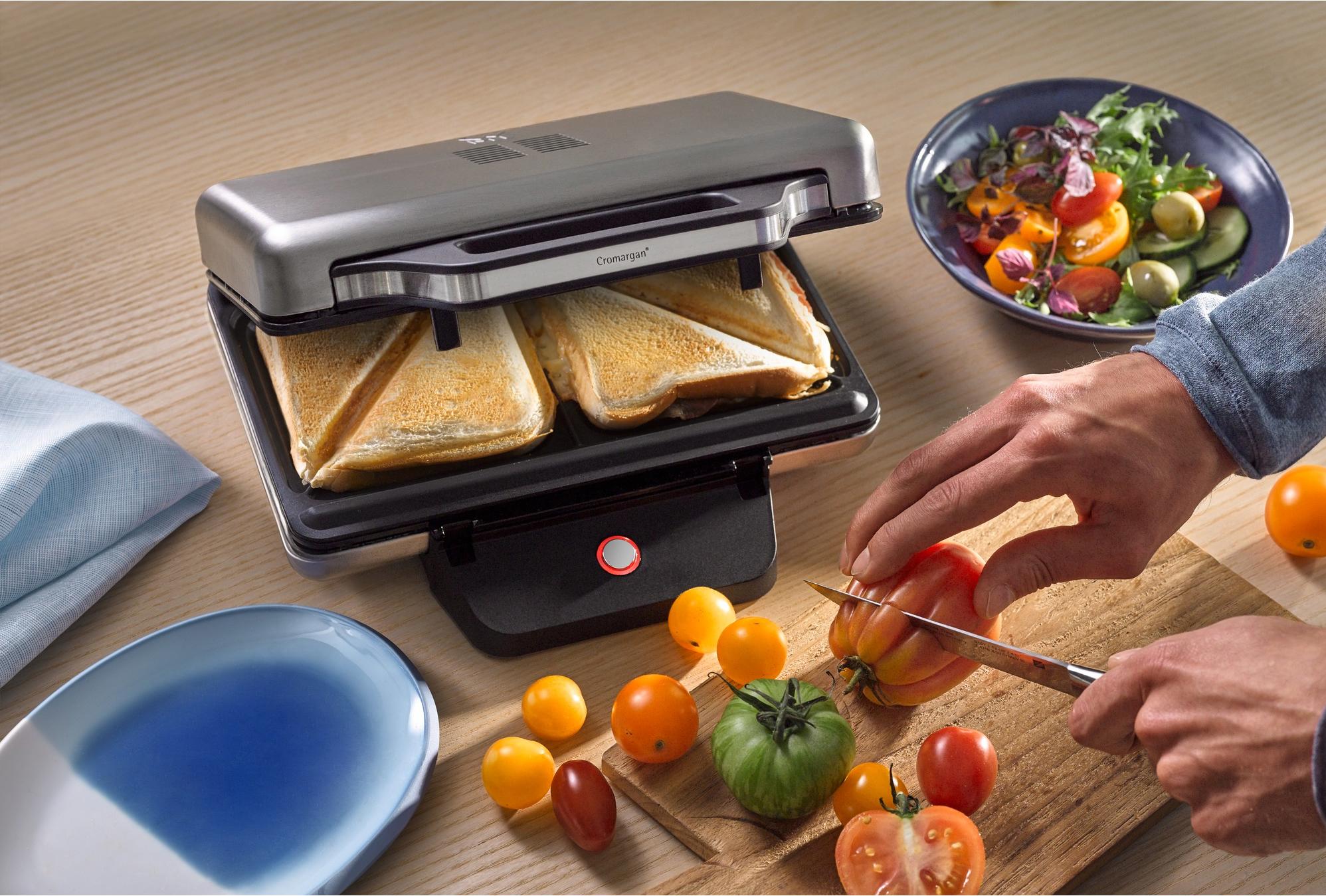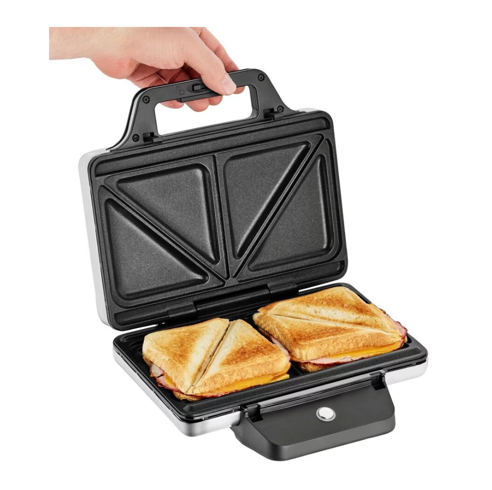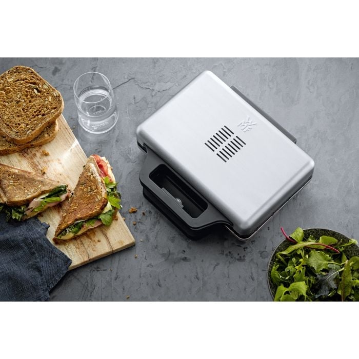 Not all sandwiches are created equal. From classic to vegan and gluten-free to double-deckers, with the WMF LONO Sandwich Maker, the possibilities are endless! Unlock your full creativity for all your favorite sandwiches crisped to golden-brown perfection. The XXL capacity lets you cook two sandwiches at once with even XXL sliced bread. Crispy, mouth-watering results are ensured with 800W of power and simple controls for enjoying irresistible sandwiches from the comfort of your own kitchen. The adjustable height system offers two different thickness settings to cover a wide variety of creations and ingredients. The LONO collection offers practical, high-performance appliances that add modern style to your kitchen aesthetic. Clean, essential lines come together with trendsetting contours—crafted in sleek yet robust Cromargan®—for design at its most sophisticated. The result is performance and durability as only WMF kitchen professionals can deliver.