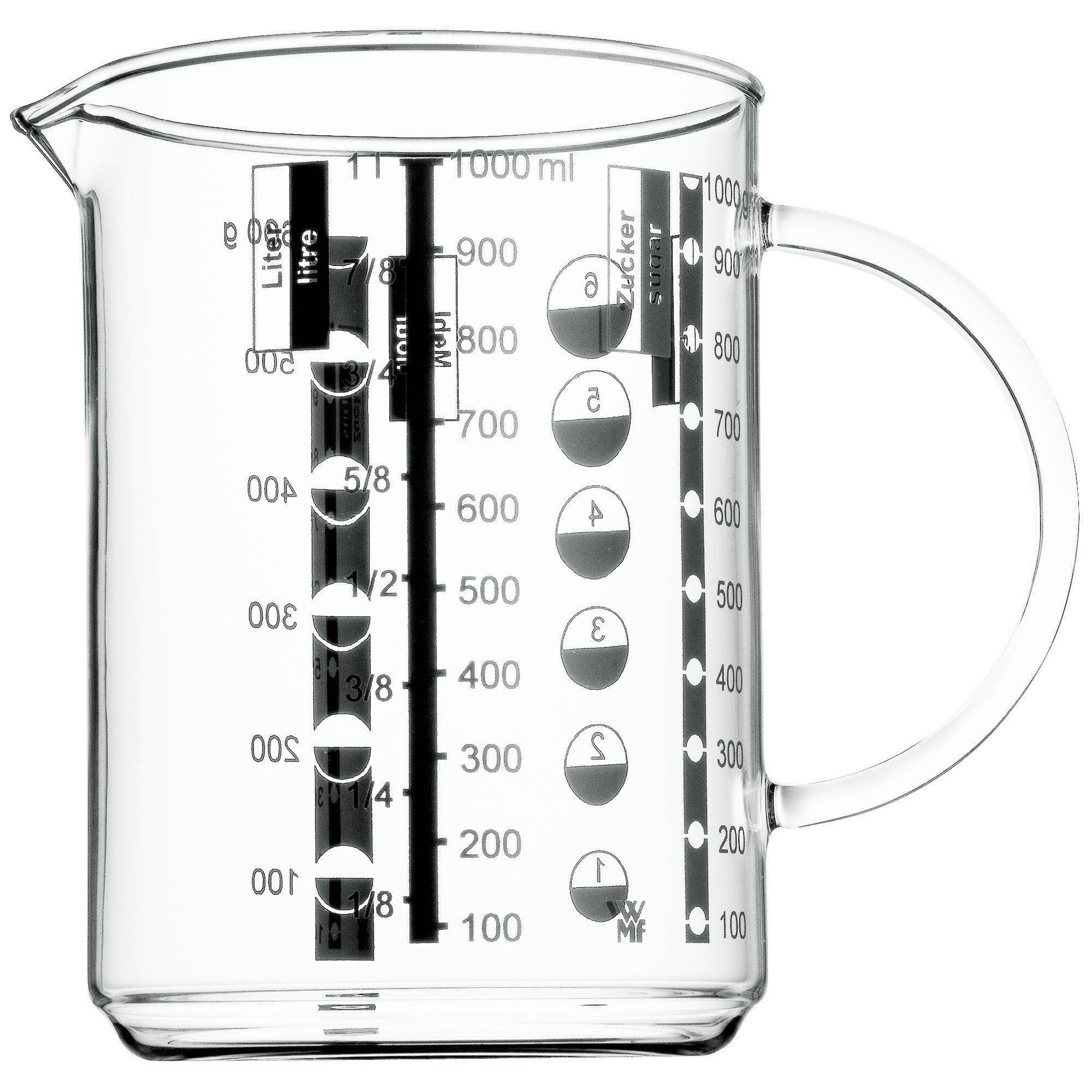 No kitchen is complete without the right measuring cup. Now, discover this must-have kitchen essential at WMF standards of quality. The WMF Glass Measuring Cup was designed to meet all your culinary needs with total ease. Master a wide range of new recipes thanks to the smart design, including built-in measuring marks in your choice of four versatile measuring units: liters, milliliters, cups and grams. Easy to read and prominently displayed, the built-in scales offer total precision and convenience. The drip-free spout comes together with a practical handle for total comfort, safety and ease. With dishwasher-safe, microwave-safe and heat-resistant glass (up to 200 °C) engineered at uncompromising standards of quality, this high-performance glass measuring cup is perfect for helping to create delicious sauces, soups and more with a format designed for all your everyday cooking needs.