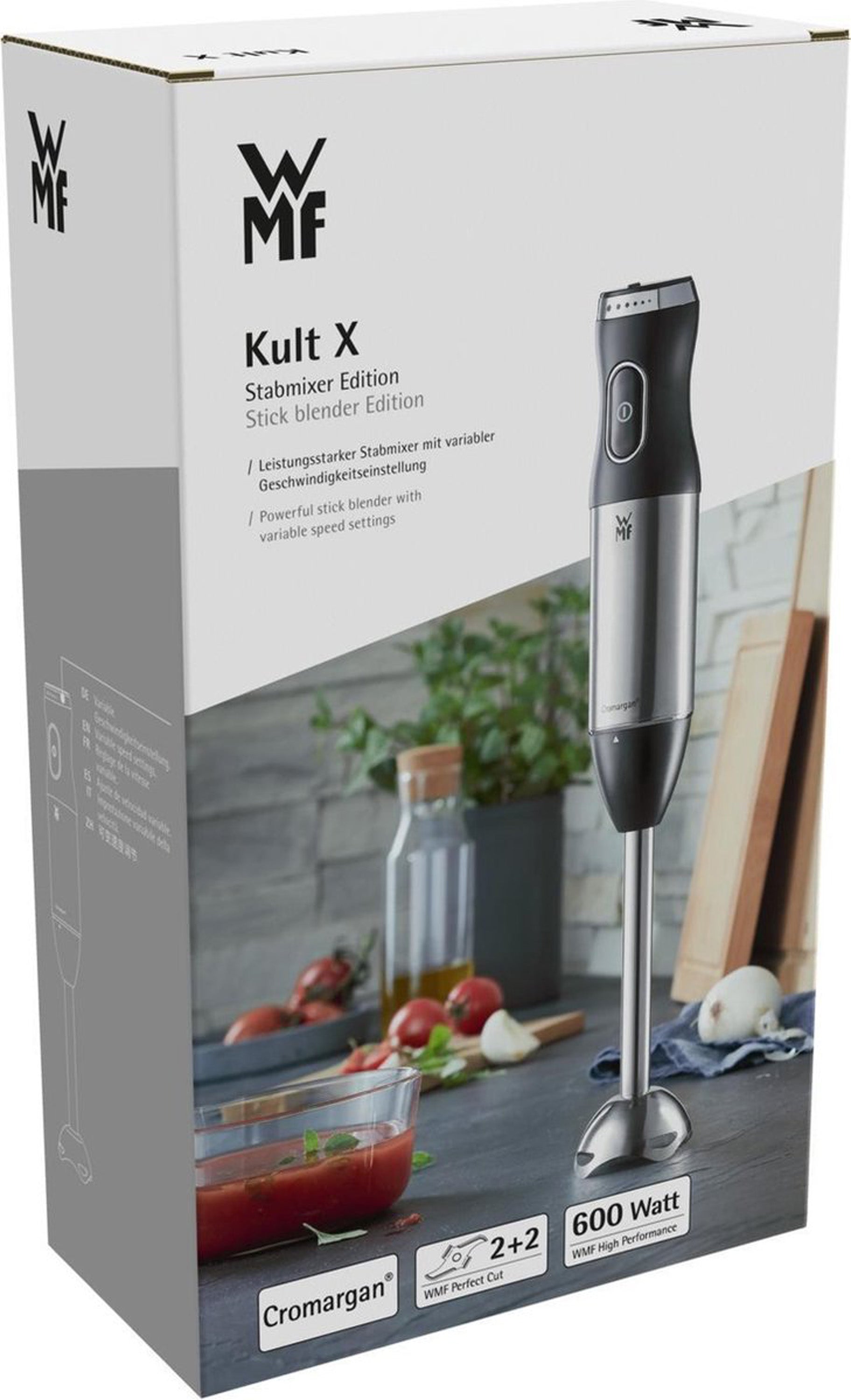The Kult X Stick Blender by WMF impresses with its mix of power, function and style—all in a sleek, sophisticated Cromargan® casing. Its high-quality stainless steel blades with WMF 2+2 knife technology ensure outstanding results with an adjustable speed setting for fast, even blending adapted to every taste. This versatile blender with detachable, dishwasher-safe stick comes equipped with 600W of power for high-performance blending and perfect results in no time. Rounding off this powerful kitchen appliance is a safe, ergonomic design to match its stunning aesthetic.