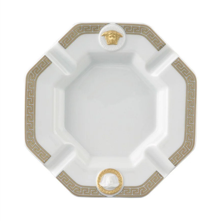 To izdelek, ki je lahko tudi čudovito darilo Versace se imenuje Gorgona. Izdelan je iz najfinejšega porcelana, ki ustvarja slog, ki ga najbolje opišemo kot razkošen in glamurozen. Pepelnik meri 14 cm. Najpomembnejša barva tega predmeta je bela.