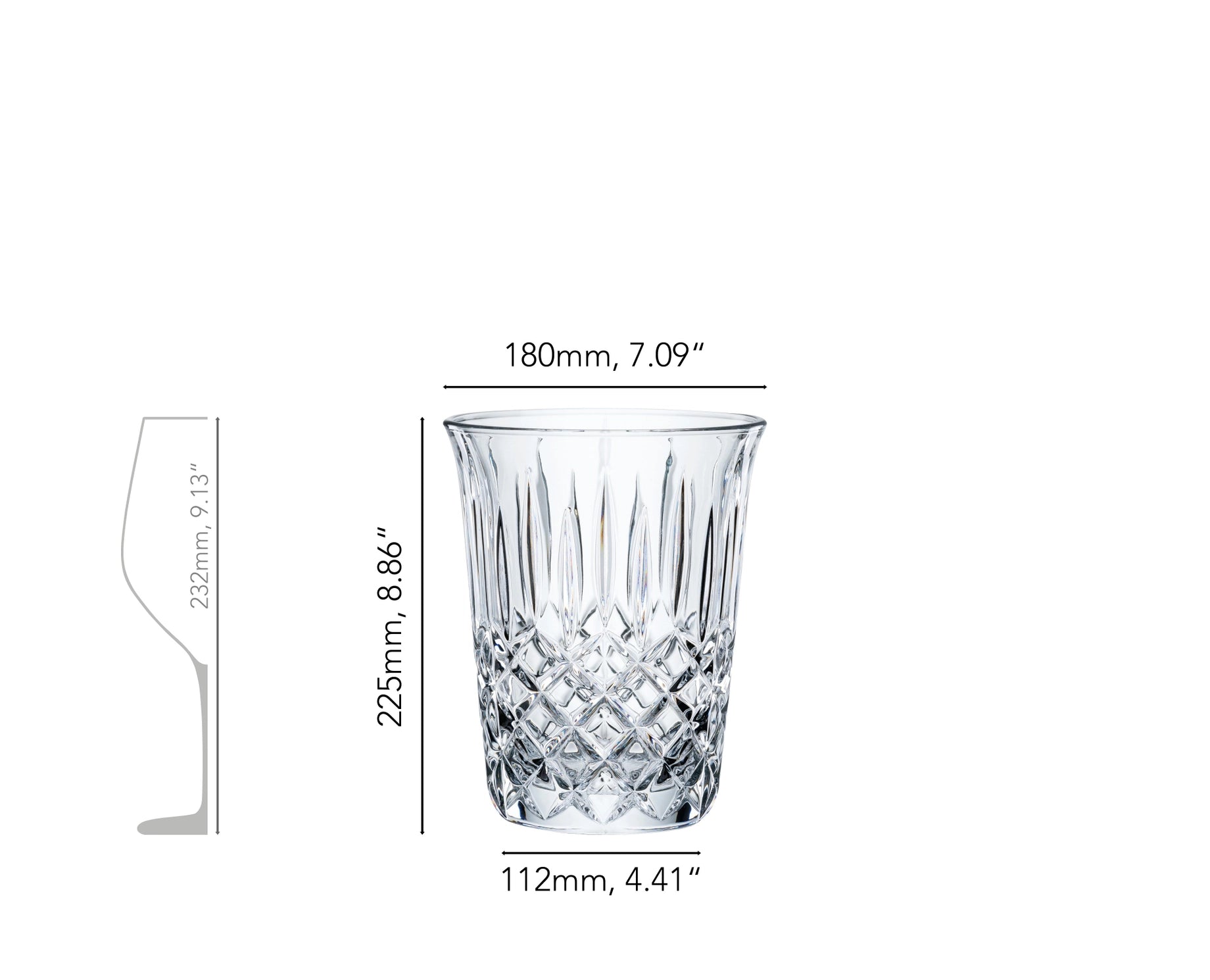 It is large enough to fit a standard bottle in ice cubes, wheather champagne, sparkling or still wines.The Noblesse series brings a touch of luxury to your home and celebrates the revival of classic design. Beautifully cut from the finest crystal, the products are a 'must have' for anyone who wants to bring new luster to their home.