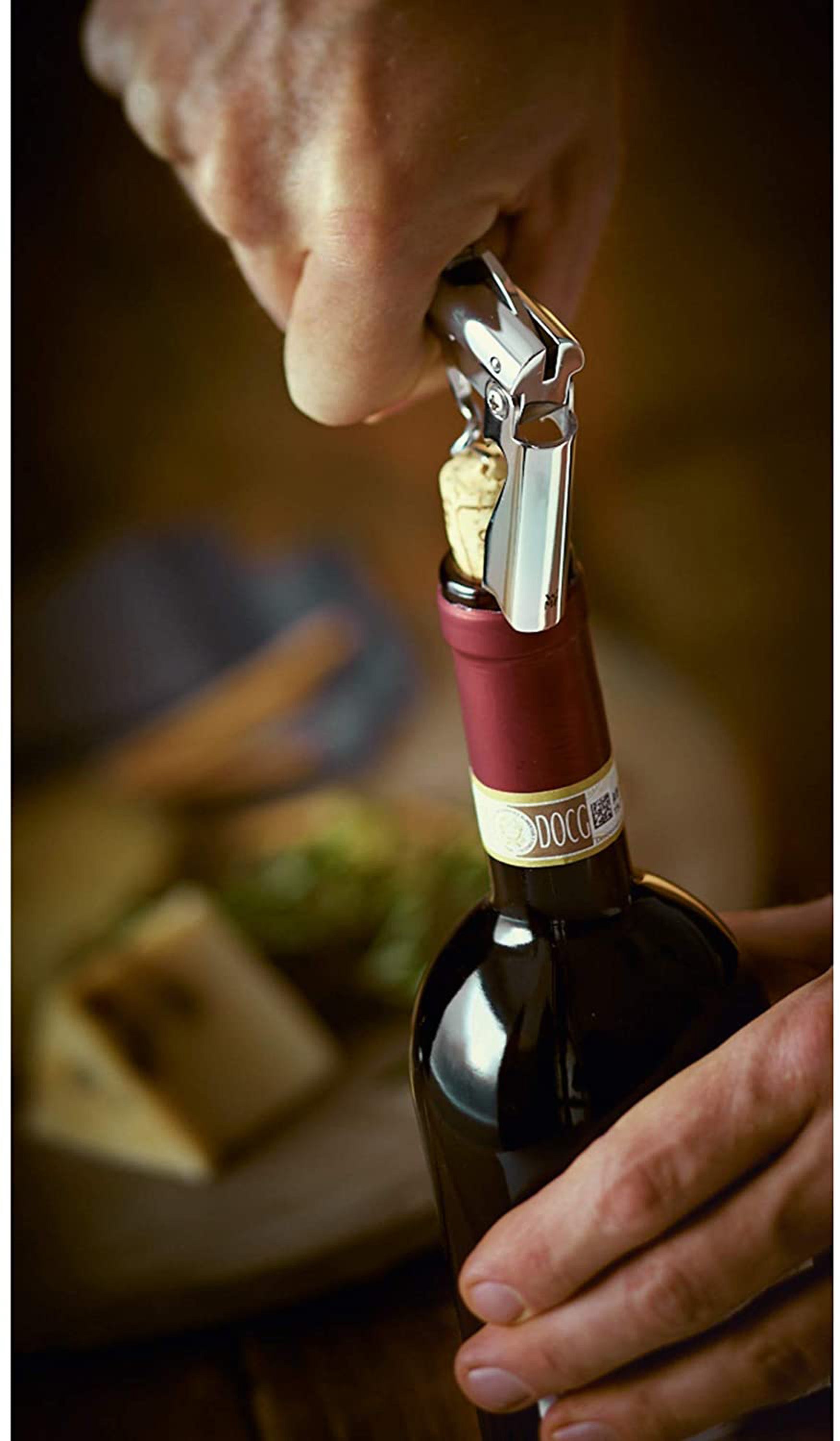 Fina vina zahtevajo previdno odpiranje. Nož Vino Sommelier proizvajalca WMF ponosno stoji poleg profesionalnih barskih orodij z zasnovo 3 v 1, ki združuje funkcionalnost in estetiko. Njegovo ostro rezilo brez truda reže in odstrani folijo na grlu steklenice, medtem ko natančno koničast prevlečen vijak zdrsi brez truda v vse vrste zamaškov. Primeren je celo za penine. Ta osnovni natakarski nož, ki ga je zasnoval nagrajeni oblikovalec Wolf Udo Wagner, ima osupljivo obliko, ki se popolnoma prilega roki, zaokrožuje pa ga praktičen odpirač za steklenice.