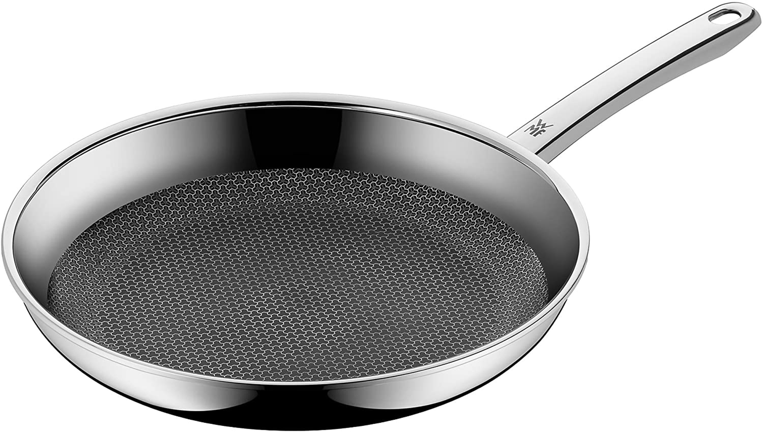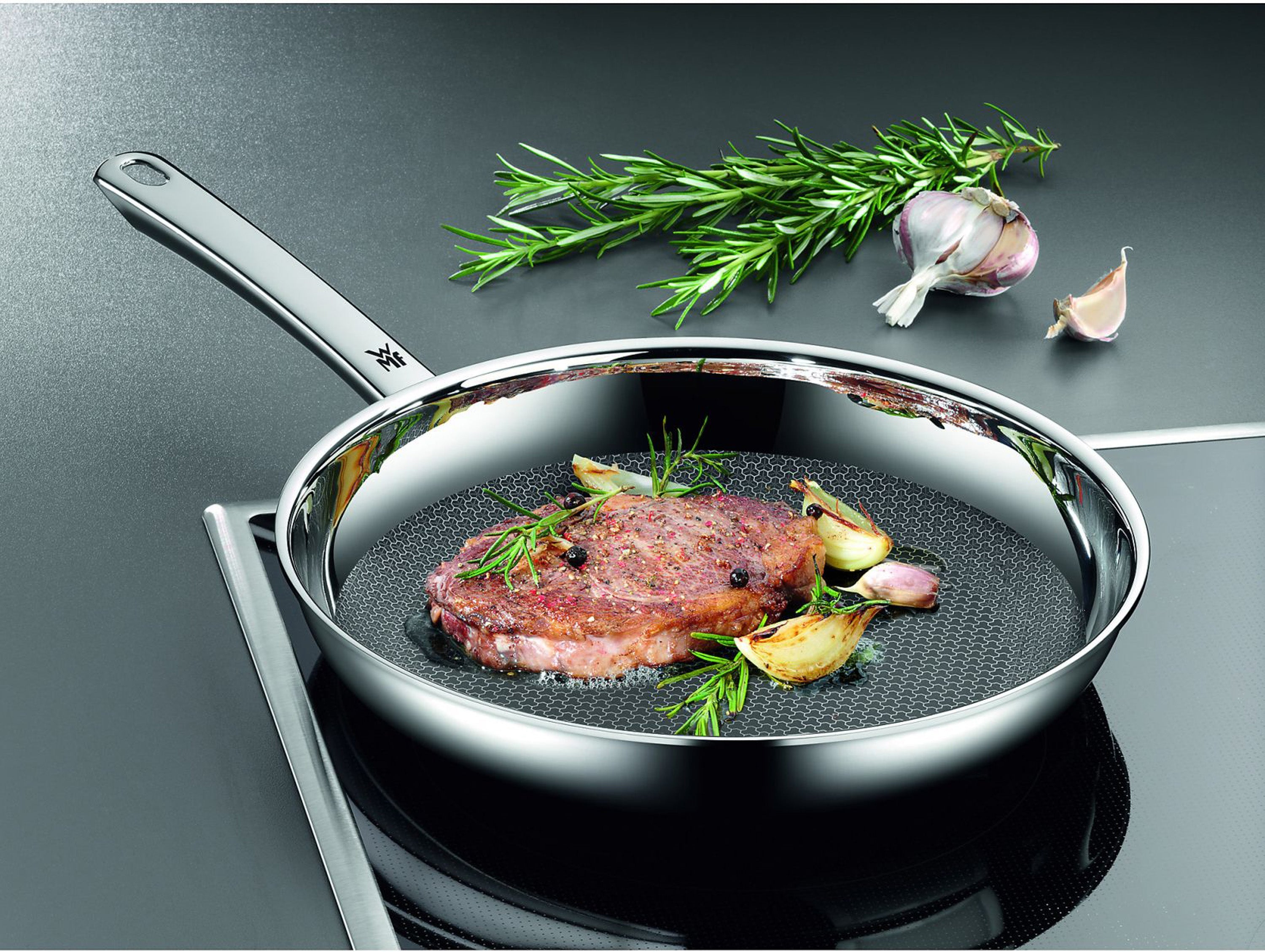 From flash-frying at very high temperatures to cooking delicate ingredients with minimum added oil, the WMF Profi Resist Fry Pan brings together the best of two worlds. On the one hand, its scratch-resistant WMF Protection Grid and PermaDur Long-Lasting non-stick coating offer robust use and effortless clean-up. On the other hand, a multilayer construction with aluminum core and Cromargan® exterior ensures the outstanding results of a traditional uncoated pan. With a design that safely goes from stovetop to oven in an instant, and convenient features including reduced-heat handles and a wide pouring rim, this fry pan promises flawless results every time. Compatible with all stovetops, including induction.