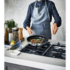 Resistance and versatility come together in the WMF Durado Fry Pan. This durable all-rounder is the ideal solution for every kind of dish, from delicate sautés to high-heat stir-fries. Its robust ceramic coating is heat-resistant up to 400°C, offering excellent cooking results and easy cleaning. At the same time, its TransTherm® universal base ensures optimal heat distribution and retention that saves energy while cooking. Crafted from sleek Cromargan®: stainless steel 18/10, this practical kitchen pan goes straight from stovetop to oven for a flawless finish. Rounding it off are convenient features, including a reduced-heat handle and a wide pouring rim for drip-free serving and a spotless kitchen. Compatible with all stovetops, including induction.