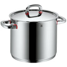 Safe cooking and ultimate comfort: The WMF Premium One Stockpot was designed to deliver restaurant-quality results every time. Equipped with stay-cool handles for stay-safe cooking, WMF's patented Cool+ technology limits the transfer of heat from the pot to the handles, for comfortable cooking with total peace of mind, while the stackable design ensures easy storage. The durable stainless steel lid also features a stay-cool handle, along with a high-performance long single steam vent for versatile performance. Our premium cookware boasts outstanding durability, expertly crafted from high-quality Cromargan®: stainless steel 18/10: dishwasher safe, acid-resistant and oven-proof, ensuring full flavor and performance that's built to last with a sleek aesthetic that never fails to impress. Enjoy mouth-watering soups and stews with the TransTherm® universal base, for a stainless steel pot that's compatible with all stovetops, including induction.