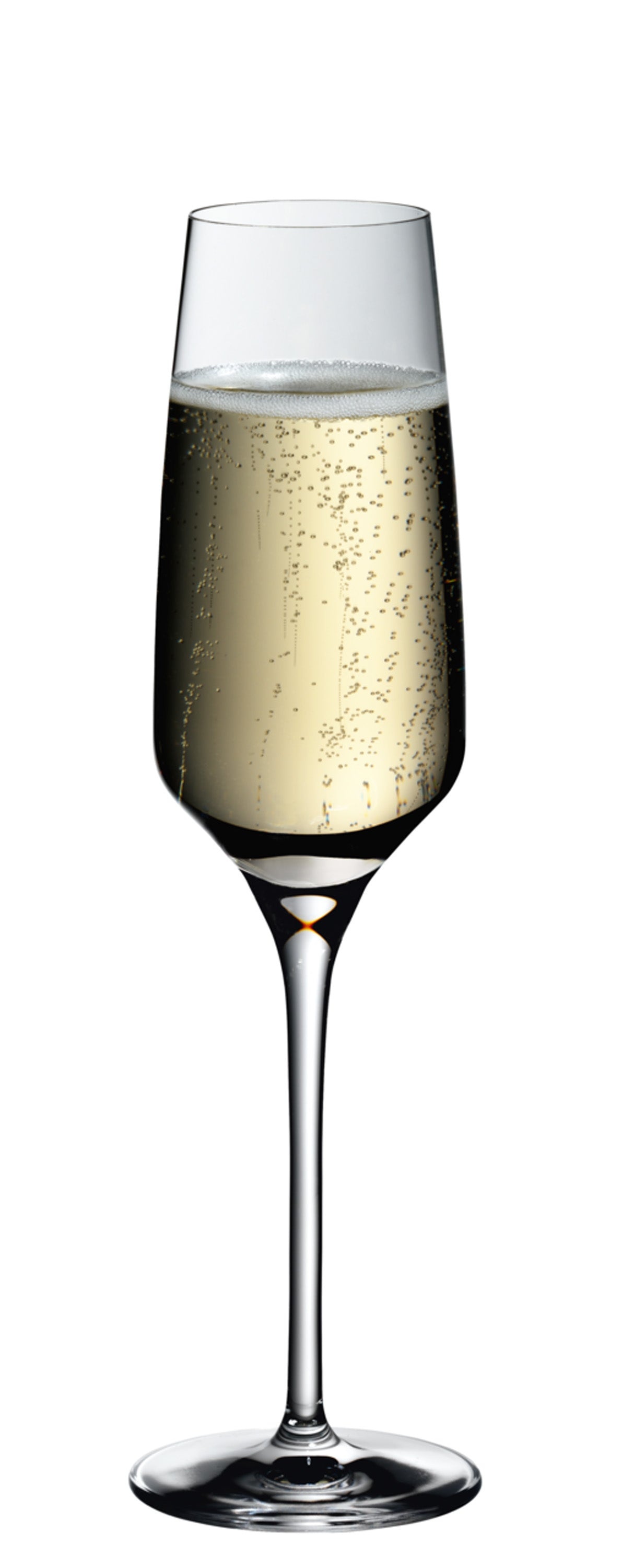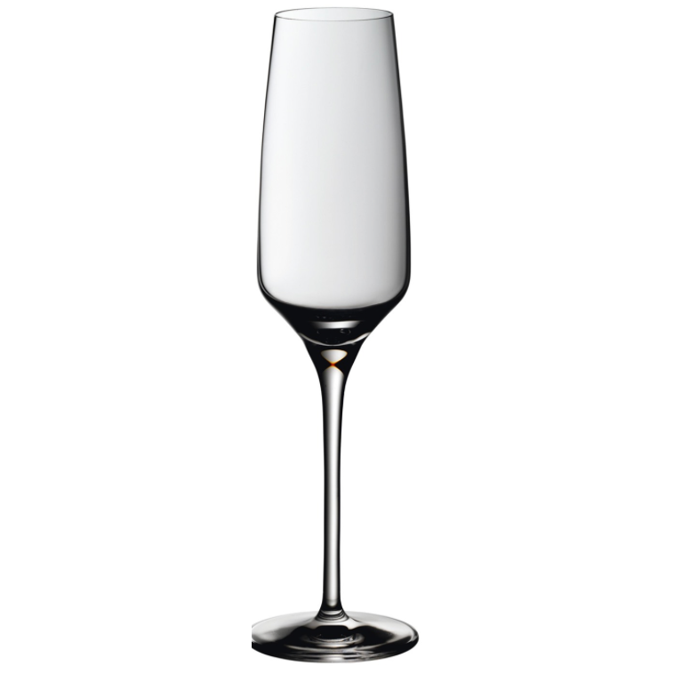 A good champagne glass presents the taste of a sparkling wine as authentically and cleanly as possible. It also promotes a fine and consistent mousse. A distinction is made between champagne saucers, champagne tulips and champagne flutes, with each reflecting a different era in champagne’s history. The tulip form is en vogue at the present time, because it magnificently showcases the special character of champagnes and adds an elegant touch to any table.