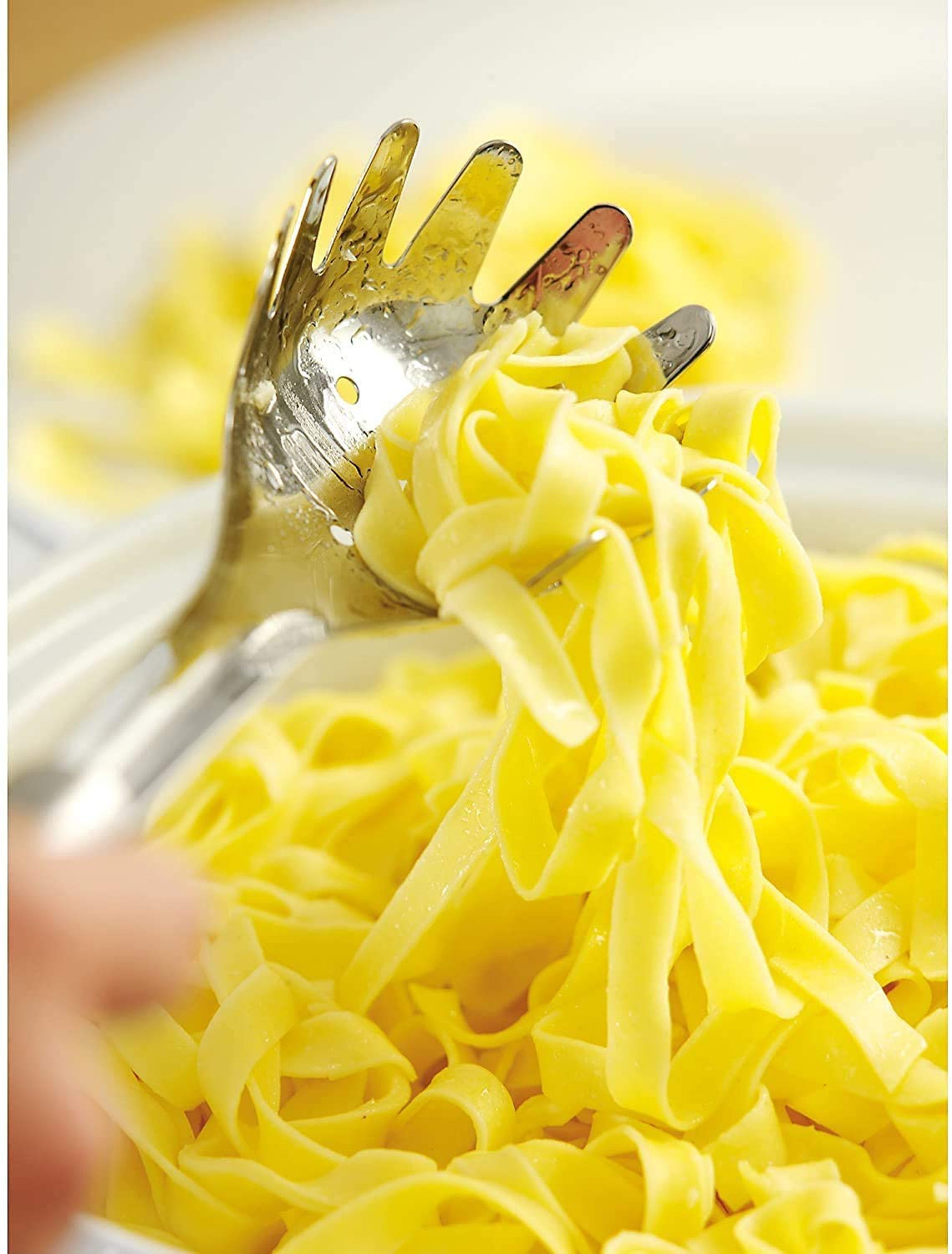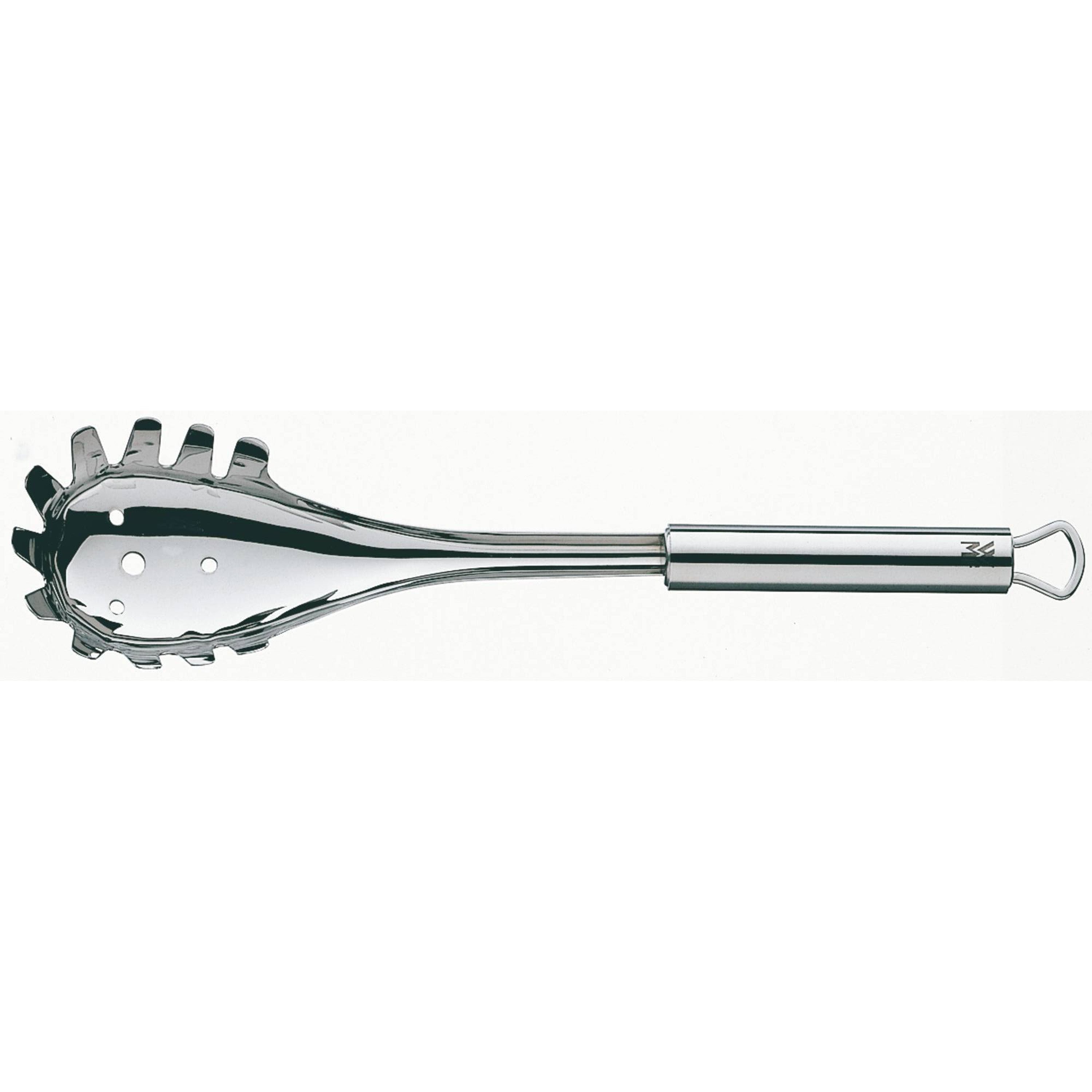 Whatever the type of pasta, the WMF Profi Plus Pasta Serving Spoon simplifies kitchen time. Its generous scoop catches short pasta with ease, while convenient prongs effortlessly grasp long varieties such as spaghetti and linguine. It even has drainage holes so that excess water is strained away. Crafted from stunning Cromargan®, this exceptionally durable pasta spoon features a practical eyelet for hanging, as well as a dishwasher-safe design for easy cleaning and perfect hygiene. The stunning yet practical Profi Plus series of kitchen tools does it all. From stylish service utensils to handy preparation tools, even the trickiest tasks become effortless. Blending premium-quality, watertight materials with a timeless aesthetic and long-lasting construction, Profi Plus is the perfect culinary range. Lenght (cm): 32