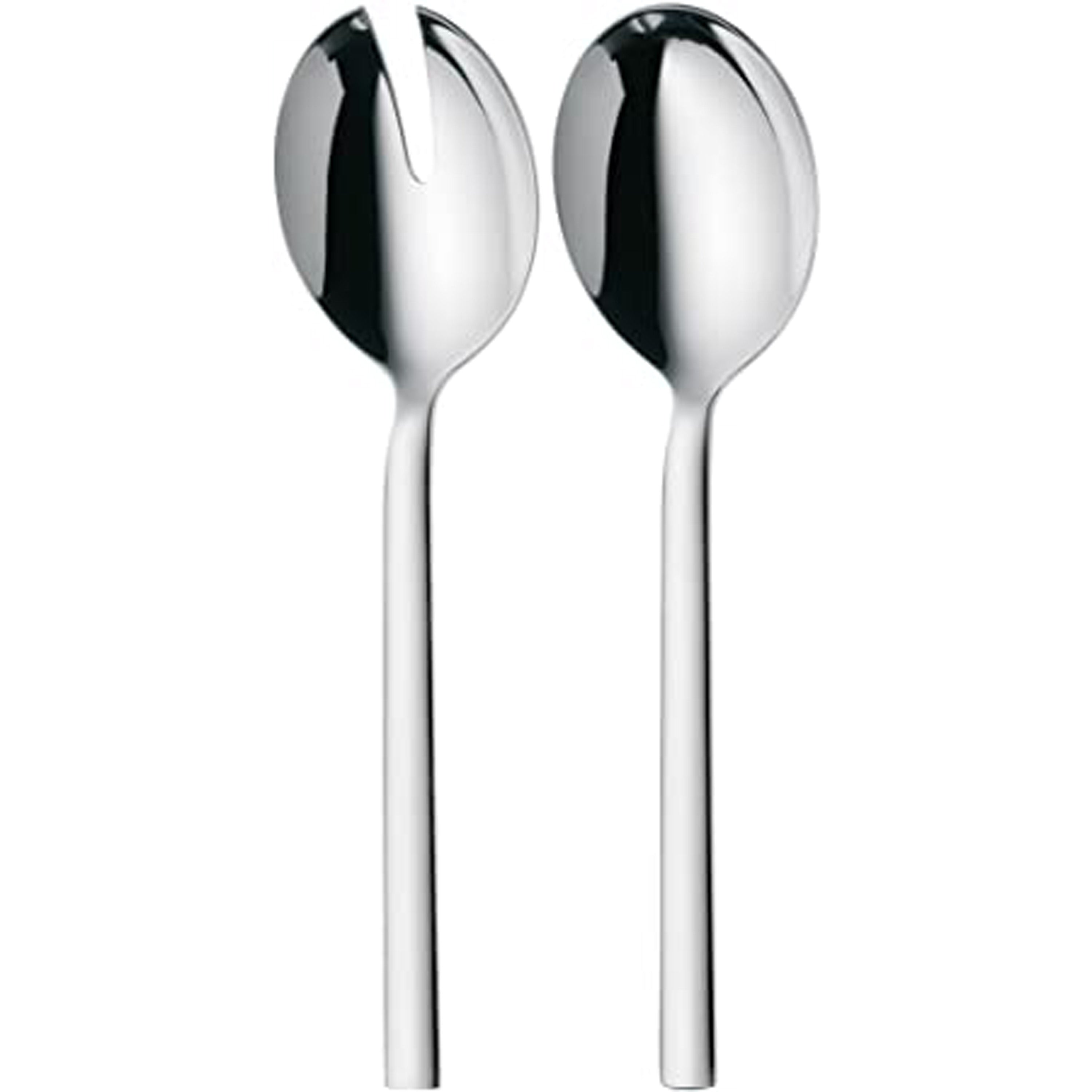 Popolna pika na i za prefinjeno obedovalno izkušnjo: Salad Set Bistro predstavlja WMF-jevo umetnost mize v najboljši obliki, saj združuje praktične, udobne in priročne funkcije s privlačnim slogom. Ta solatni set vključuje elegantno porcelansko skledo za solato v čistem slogu in par solatnega servirnega pribora, izdelanih iz visokokakovostnega Cromargan®: nerjavečega jekla 18/10 – nevtralnega okusa, odpornega na kislino in izjemno trpežnega za izjemno vzdržljivost z eleganten polirani zaključek, ki vedno navduši. Vsi deli kompleta so primerni za pomivanje v pomivalnem stroju, enostavni za vzdrževanje in dolgotrajni. Na voljo je v visokokakovostni zloženi škatli z ilustracijo, pripravljeni za darilo. WMF: Umetnost mize z več kot 160-letno tradicijo.