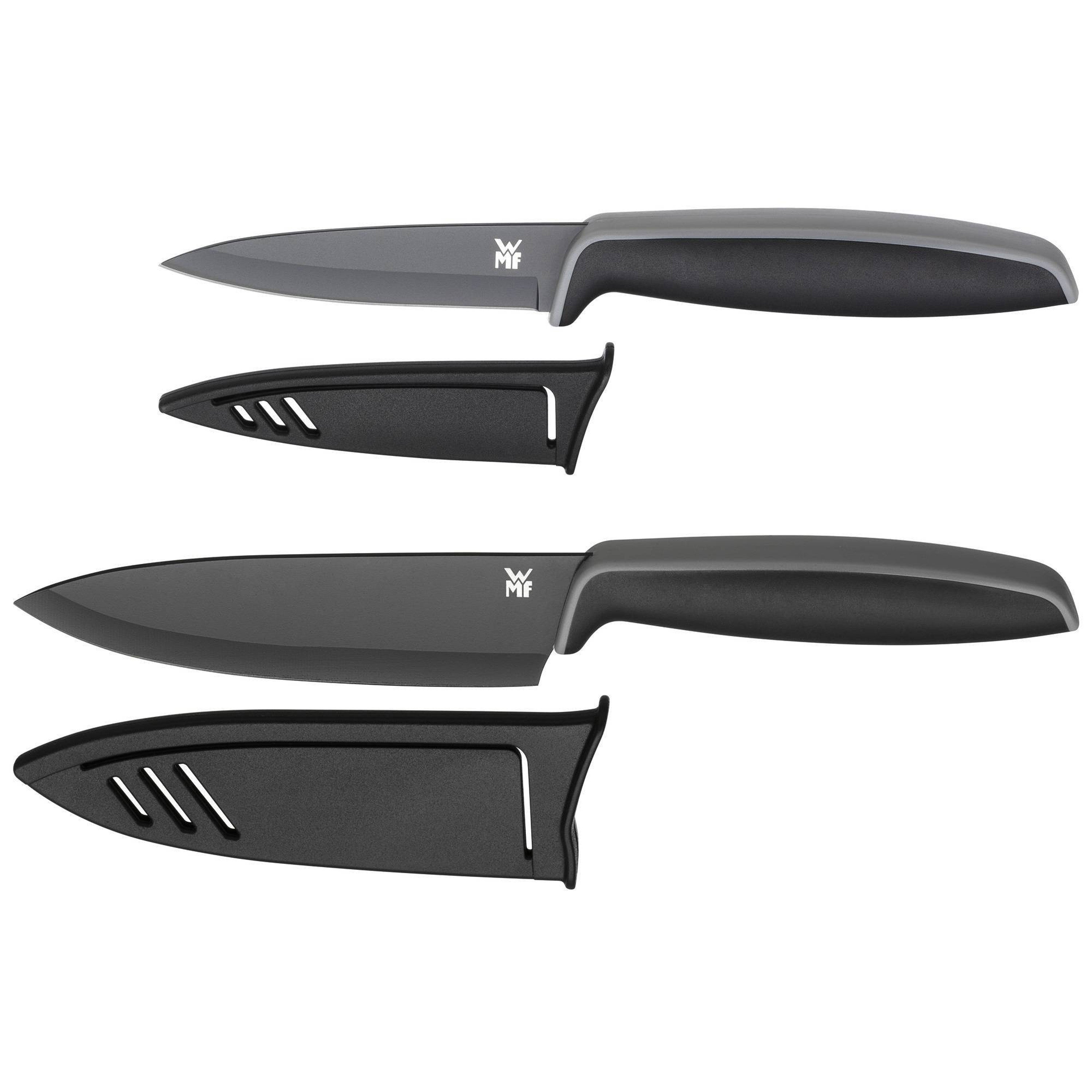 The Touch Kitchen Knife Set by WMF offers perfect everyday cutting performance designed to meet all your chopping, slicing and dicing needs—all with sleek modern style and allure. This high-quality 2-piece set includes a versatile all-rounder chef knife that cuts through anything with total ease, even the toughest ingredients, along with a high-performance utility knife for precise mincing and peeling down to the finest details.