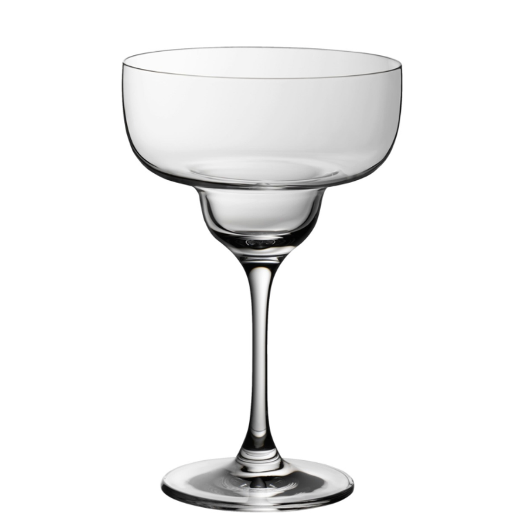 The well-loved tequila-based cocktail is served in an unusually shaped margarita glass. The long-stemmed glass has a wide rim, which is traditionally dusted with salt. But the margarita glass is perfect for the contemporary frozen variety too.