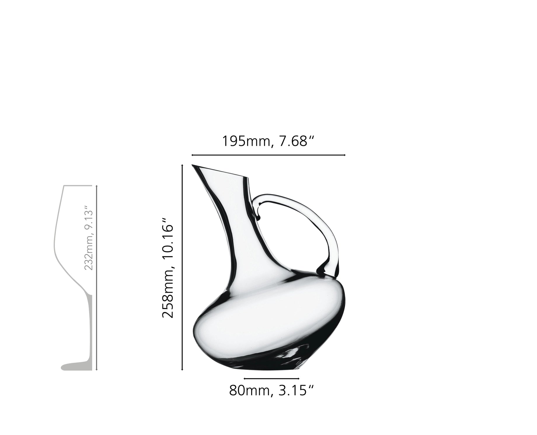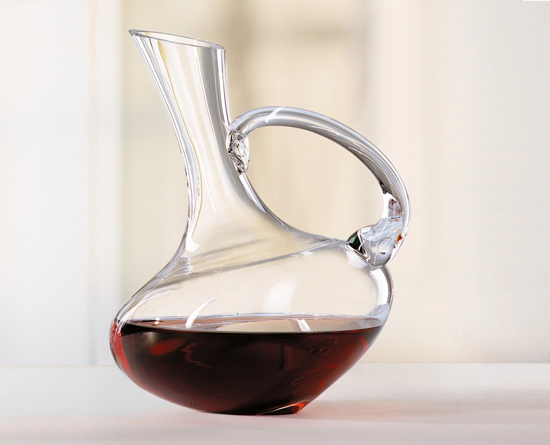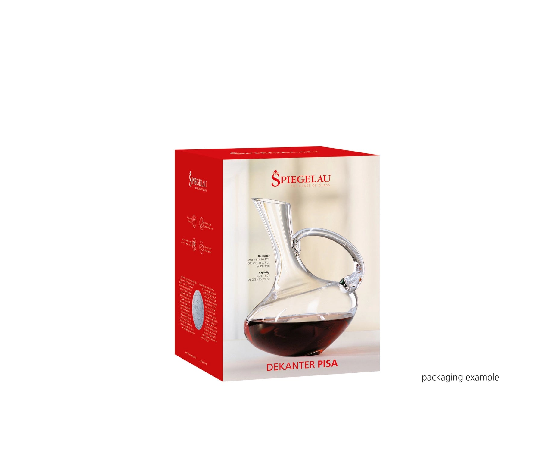 This carafe is designed to hold 1 liter.The name already reveals its special design element: an elegant neck that resembles the leaning tower of Pisa. The flattened base of the decanter ensures a secure stand.