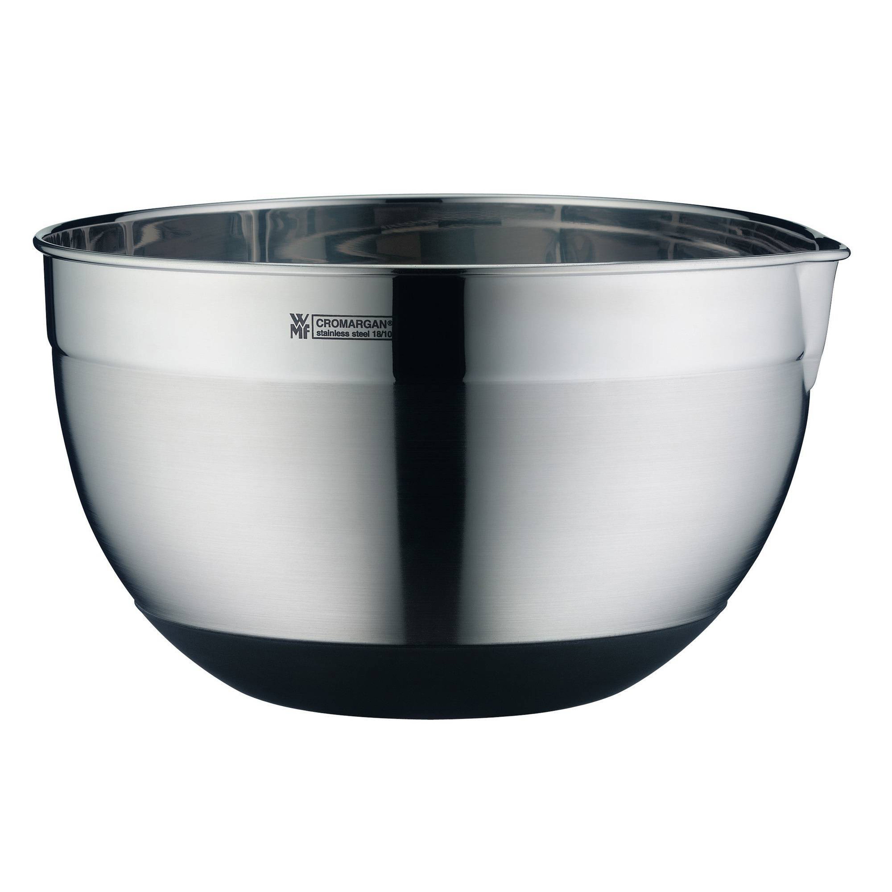 From blending ingredients and mixing sauces, to marinating meat, fish or vegetables, the WMF Gourmet Kitchen Bowl is the perfect companion for every occasion. Its bulbous design is ideal for mixing recipes or kneading dough, as well as for inserting mixing appliances with ease. At the same time, its non-slip silicone base ensures the bowl stays firmly in place. Additional practical features include a drip-free rim with pouring spout and a dishwasher-safe design for effortless clean-up. Crafted from high-quality Cromargan®, this robust stainless steel bowl features a stunning duo of finishes: matte on the outside and polished on the inside.