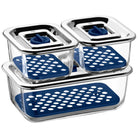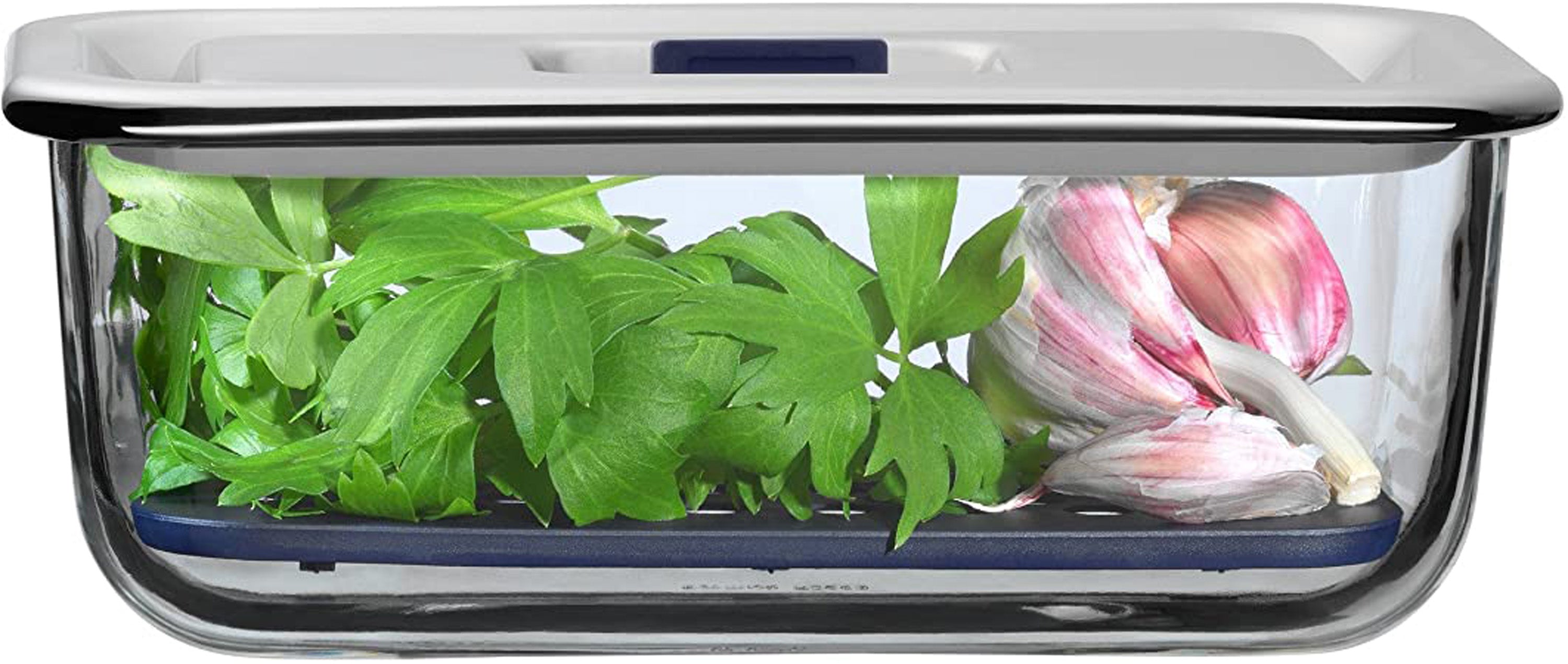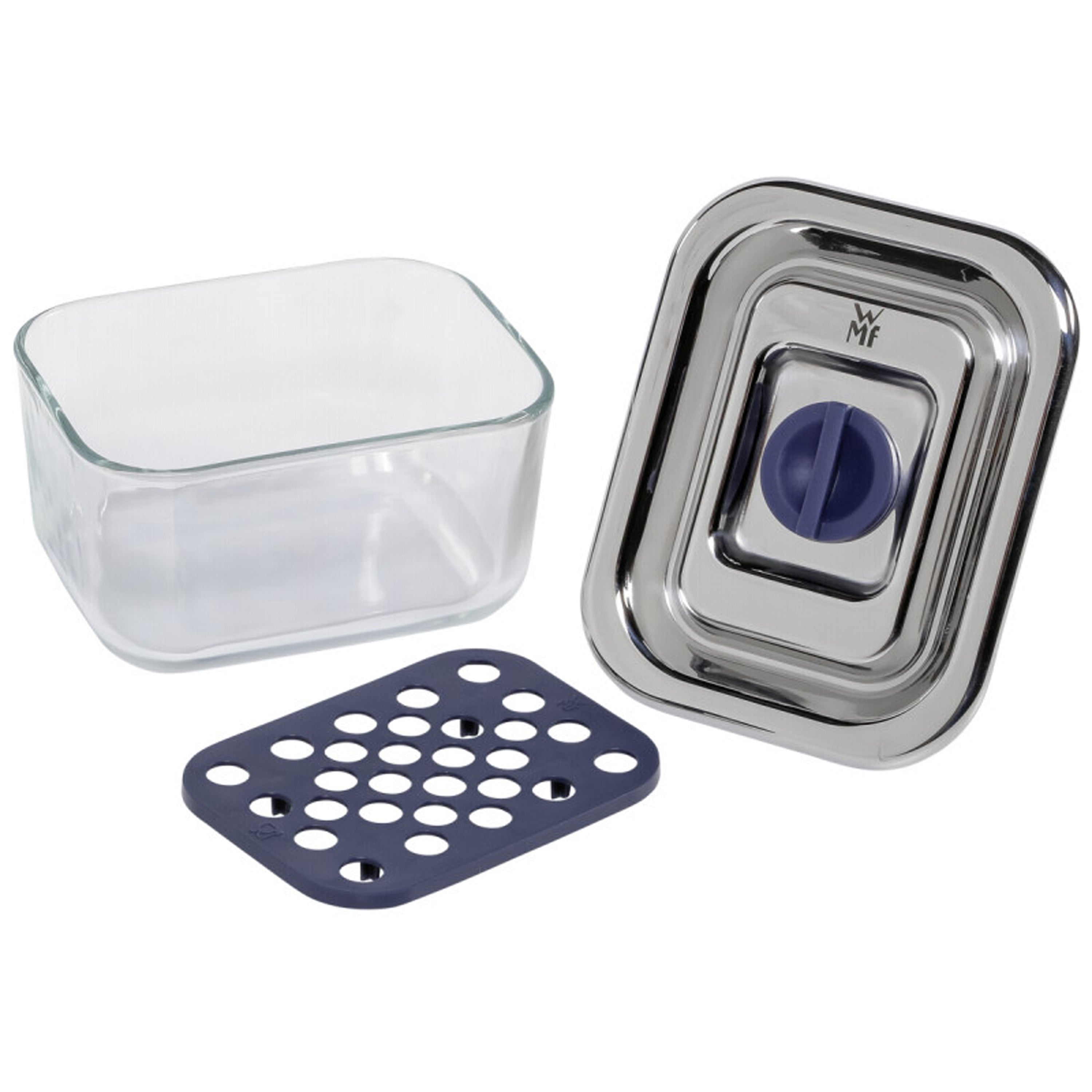 Sistem ohranjanja svežine WMF Top Serve ohranja vašo hrano svežo. Še več, zaradi klasične zasnove so steklene posode primerne tudi za serviranje hrane, morebitne ostanke lahko po obroku shranite v hladilniku, ne da bi jih morali prenašati. V ta namen posode preprosto zaprete s pripadajočimi pokrovi iz Cromargan® nerjavečega jekla 18/10. Kakovostno silikonsko tesnilo higiensko in nepredušno zapre posodo, ventil za svežino pa poskrbi za rahel podtlak, ki ohranja aromo. Integrirana mreža za tekočino v posodi preprečuje, da bi hrana prišla v stik z morebitno kondenzacijo. Tako bo vaša hrana še dolgo ostala sveža in hrustljava. Pladnje in pokrove lahko postavite v hladilnik ali pomivalni stroj.