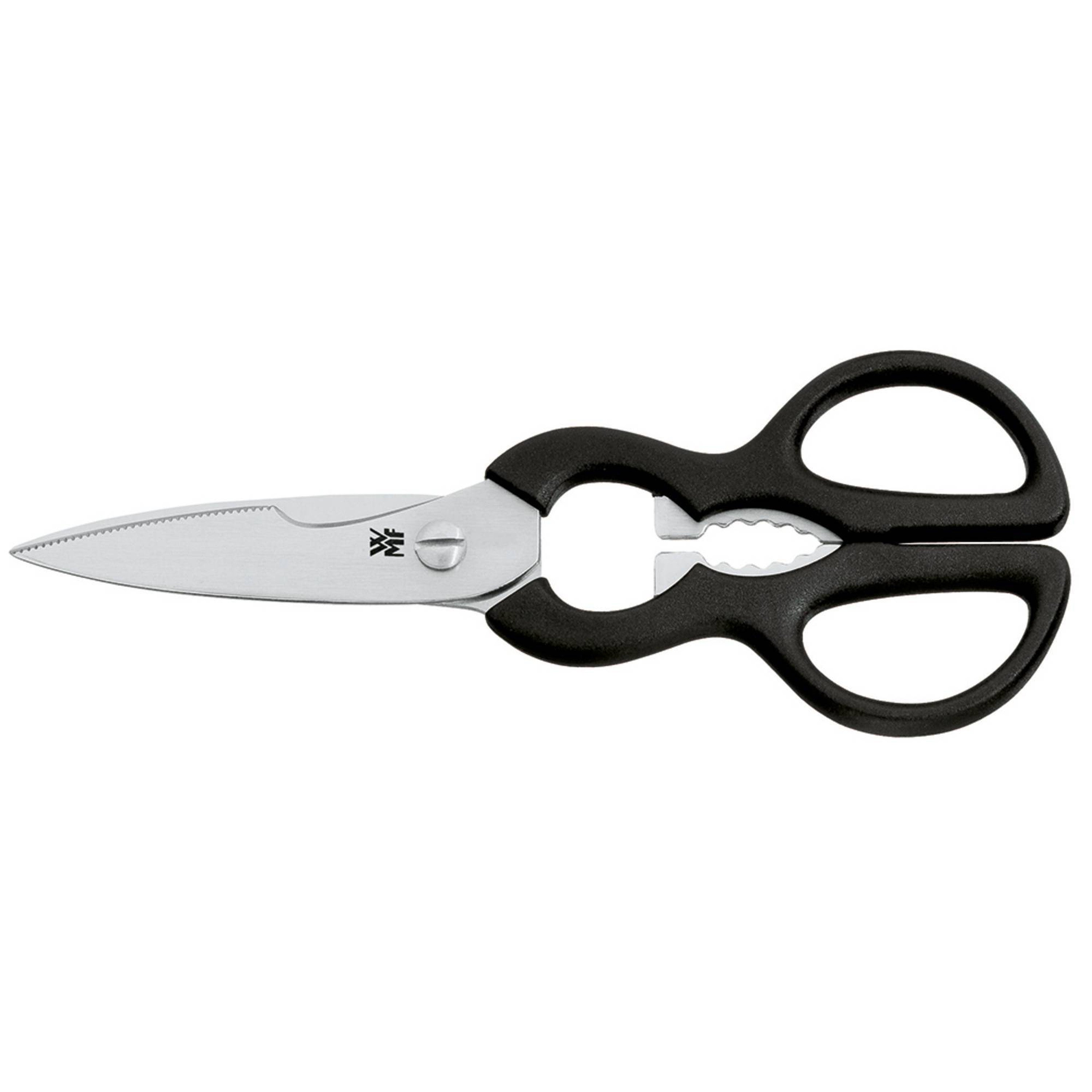 No kitchen is complete without culinary scissors—and choosing the right pair can make all the difference. WMF makes it easy, offering high-performance kitchen scissors designed to meet all your culinary needs day after day with premium materials and exceptional sharpness that stands the test of time. Discover perfect cutting made easy: Extra-sharp blades at a curved angle, a high-precision cutting edge and dual contact points, with soft-touch handles, enhanced ergonomics, a micro-serrated edge ensuring total precision, practical extras and expert craftsmanship in long-lasting Cromargan®: 18/10 stainless steel—hygienic, acid-resistant and extremely hard-wearing with an exquisite semi-matte finish. Dishwasher safe.