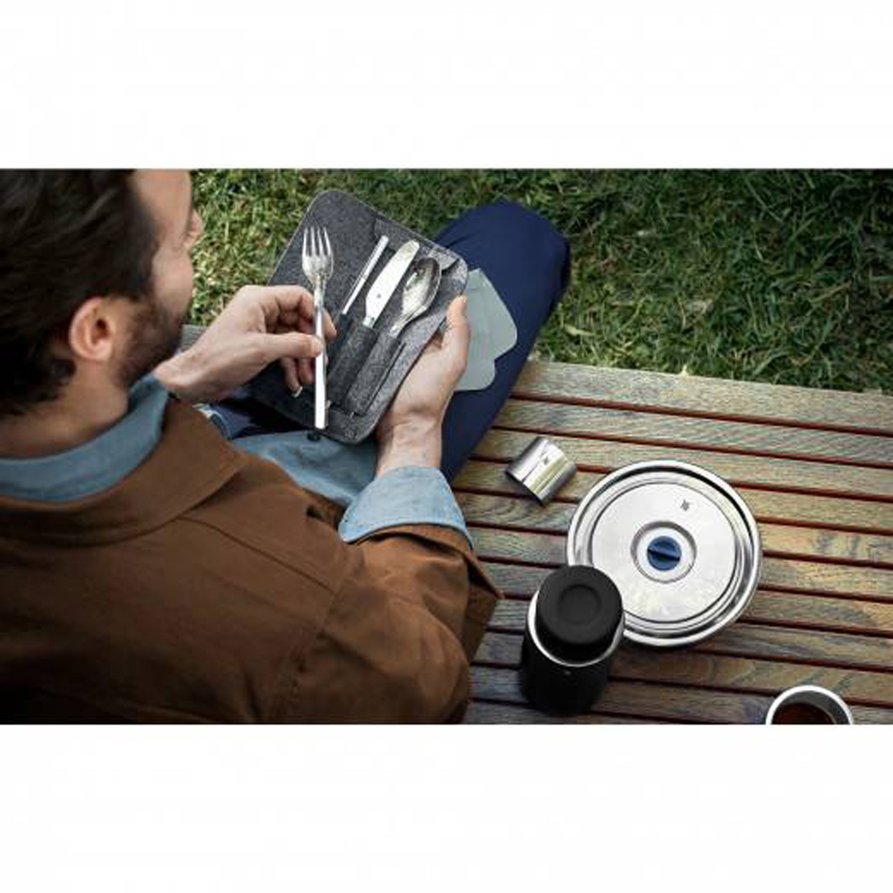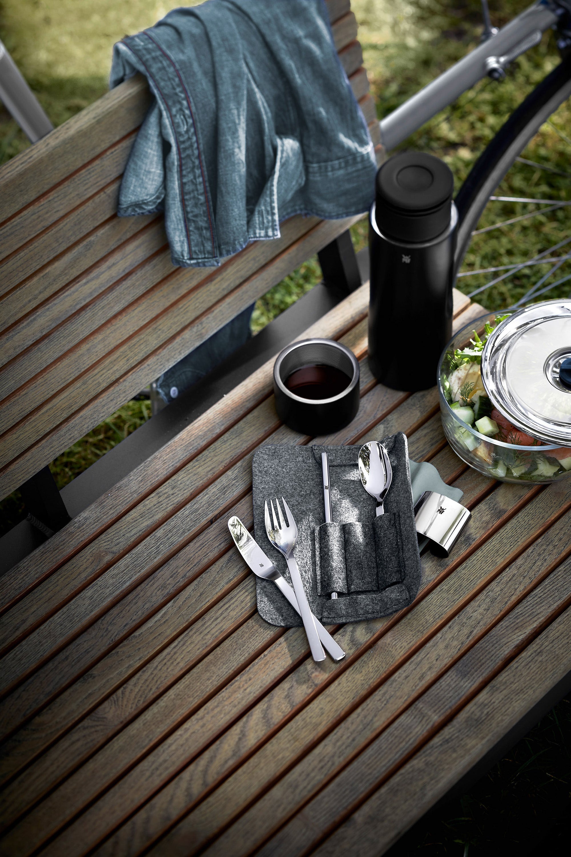 Z elegantno modernim kompletom jedilnega pribora My2Go naj bo trajnost del vsakega obroka – kamorkoli vas življenje ponese. Od zajtrkov za vašo mizo do kosil za s seboj in pijač na poti, je vsak kos posebej razvit z dobro oblikovanimi razmerji za uporabo na poti in optimalno rokovanje. Izdelan iz osupljivega Cromargan®: nerjavečega jekla 18/10, ta set vključuje vilice, zaobljen nož za enostavno rezanje, majhno, a globoko žlico, ki zlahka doseže dno skodelic, in slamica s čistilno krtačko za okusne pijače in sokove za s seboj. Ta dolgotrajni komplet je mogoče celo personalizirati in je na voljo v priročnem zložljivem kovčku iz 100 % recikliranih materialov za enostaven, a eleganten transport. Jedilni pribor in slamica sta tudi odporna proti rjavenju in primerna za pomivanje v pomivalnem stroju, kar zagotavlja odlično higieno in enostavno čiščenje dan za dnem.