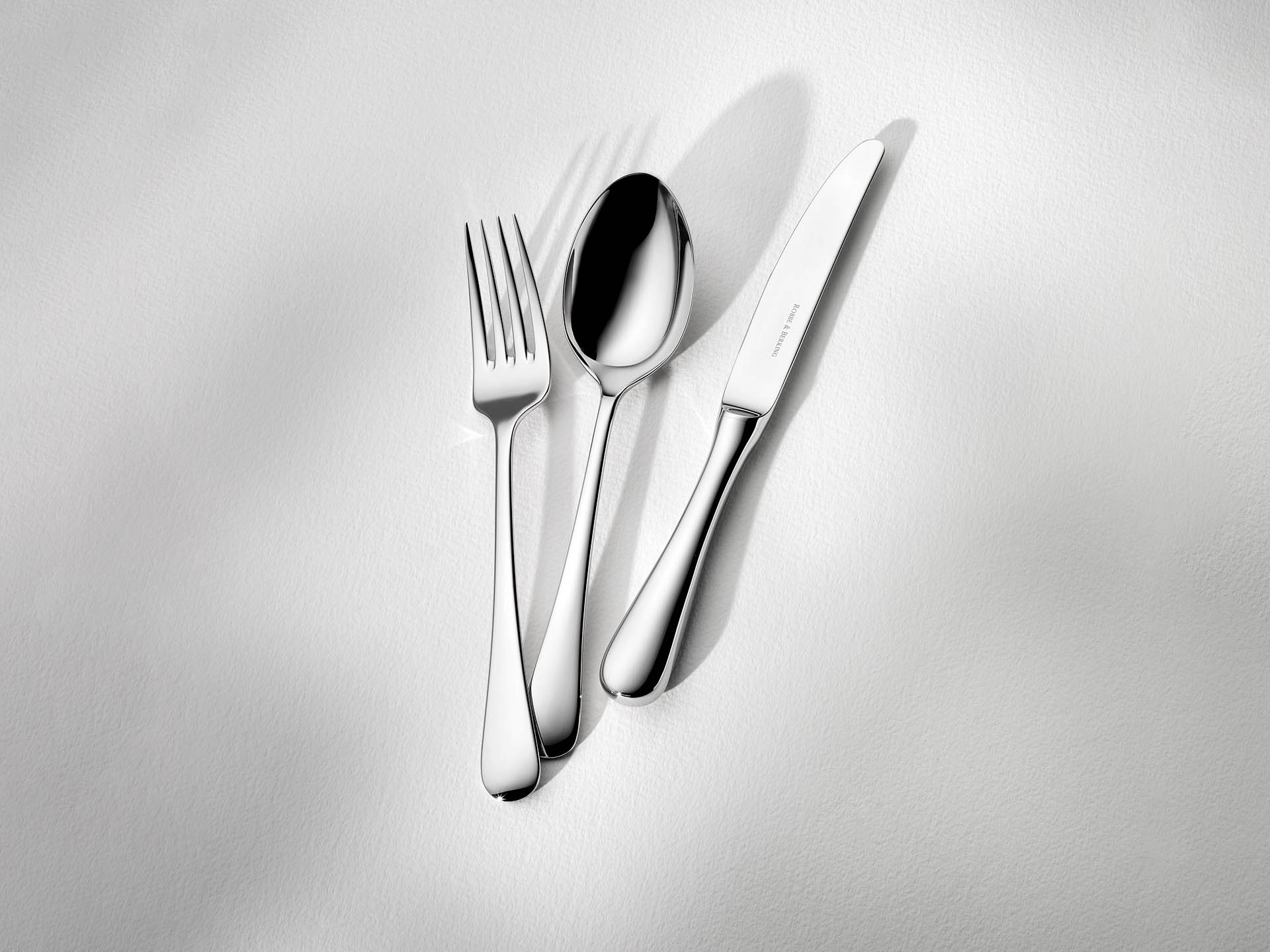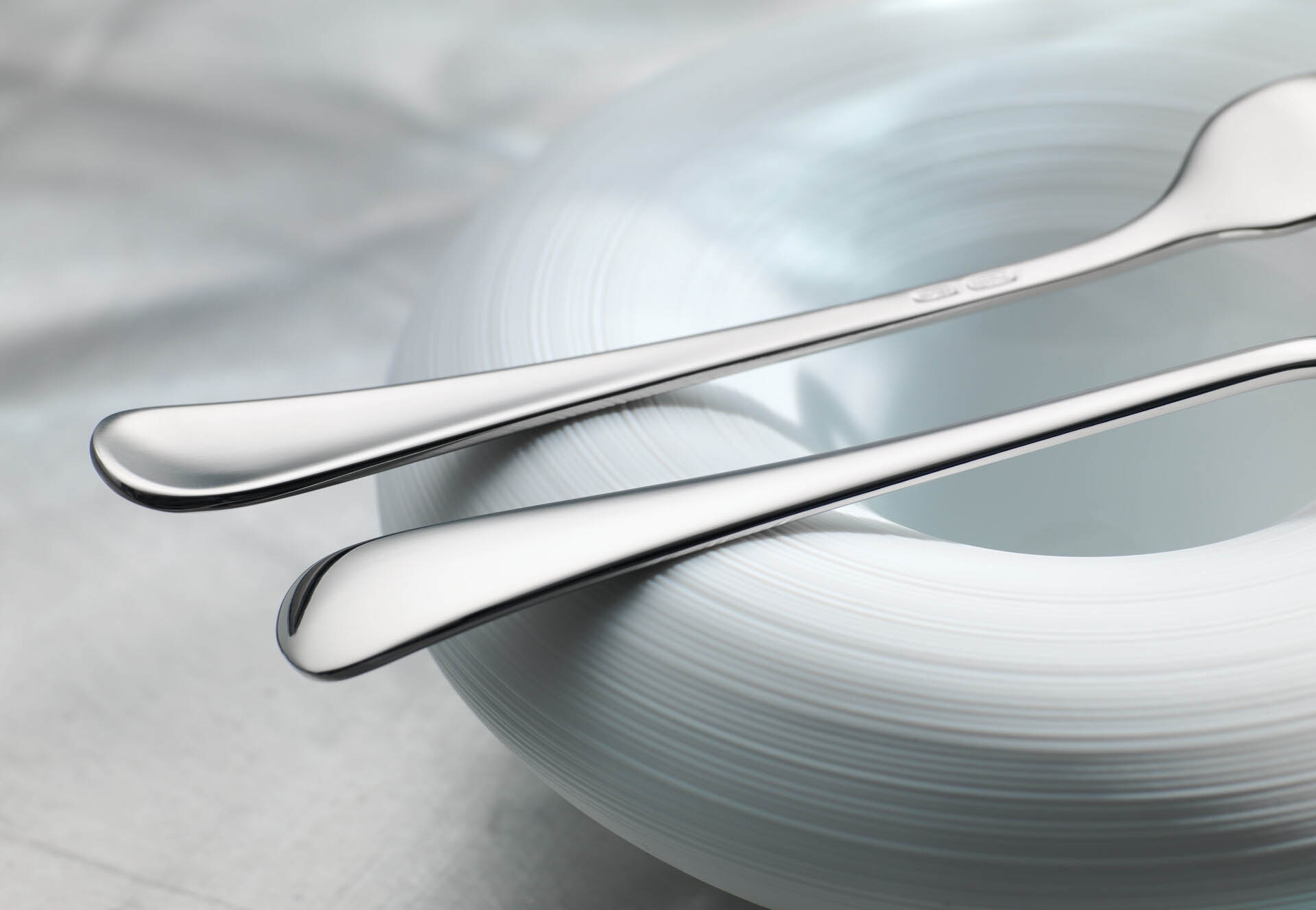 You can tell that all the stainless steel cutlery from Robbe & Berking was designed by silver experts. Connoisseurs love the harmonious lines, flowing transitions and elegant sculptural quality of the Como collection. The stem is shaped like a graceful arch. The design has the signature Robbe & Berking aesthetic and strikes a balance between form, function and material.