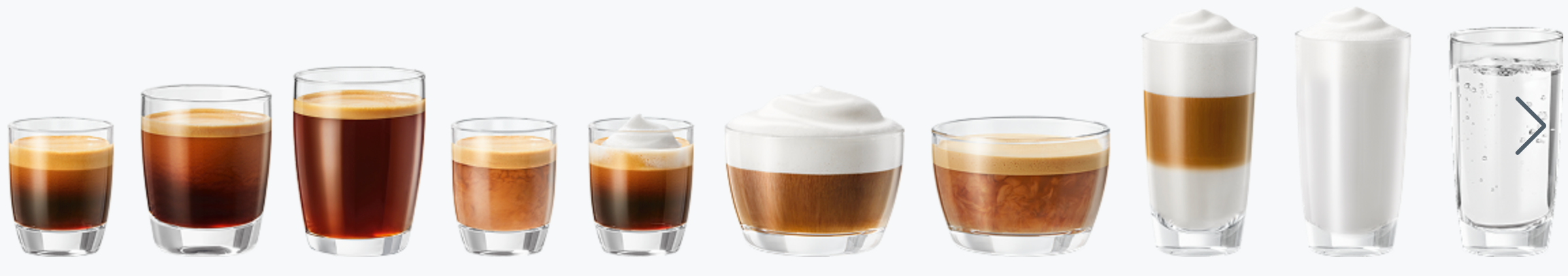 E8 ponuja široko paleto kavnih klasik in specialitet, ki jih pripravi do popolnosti. Izbirate lahko med 17 možnostmi, vse izbrane s pritiskom na gumb. Od čistega in preprostega espressa do kave, prelite z mlečno peno. Vse jih je mogoče prilagoditi individualnemu okusu in želeni velikosti skodelice. Najsodobnejša tehnologija izvleče maksimalno aromo iz vsake mešanice za popolno okusnost.
